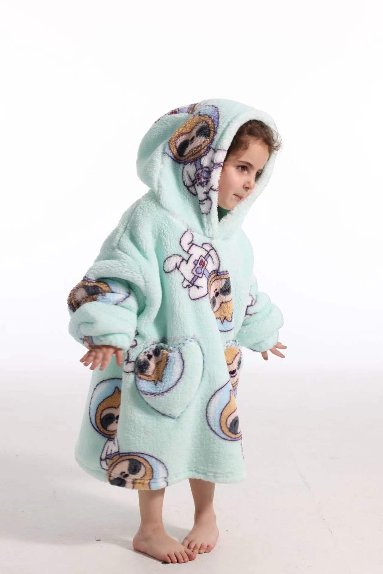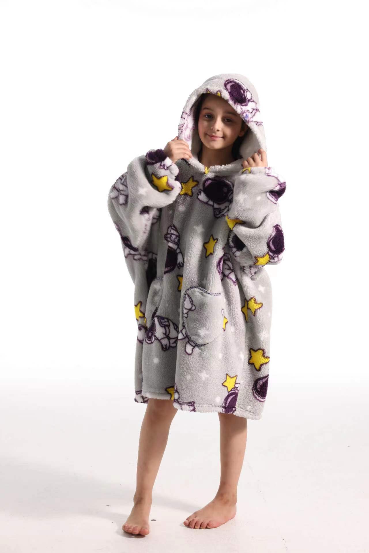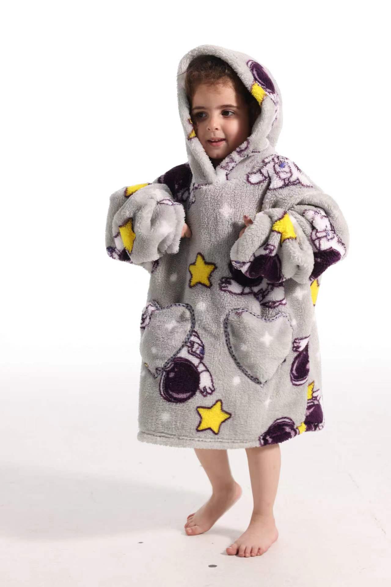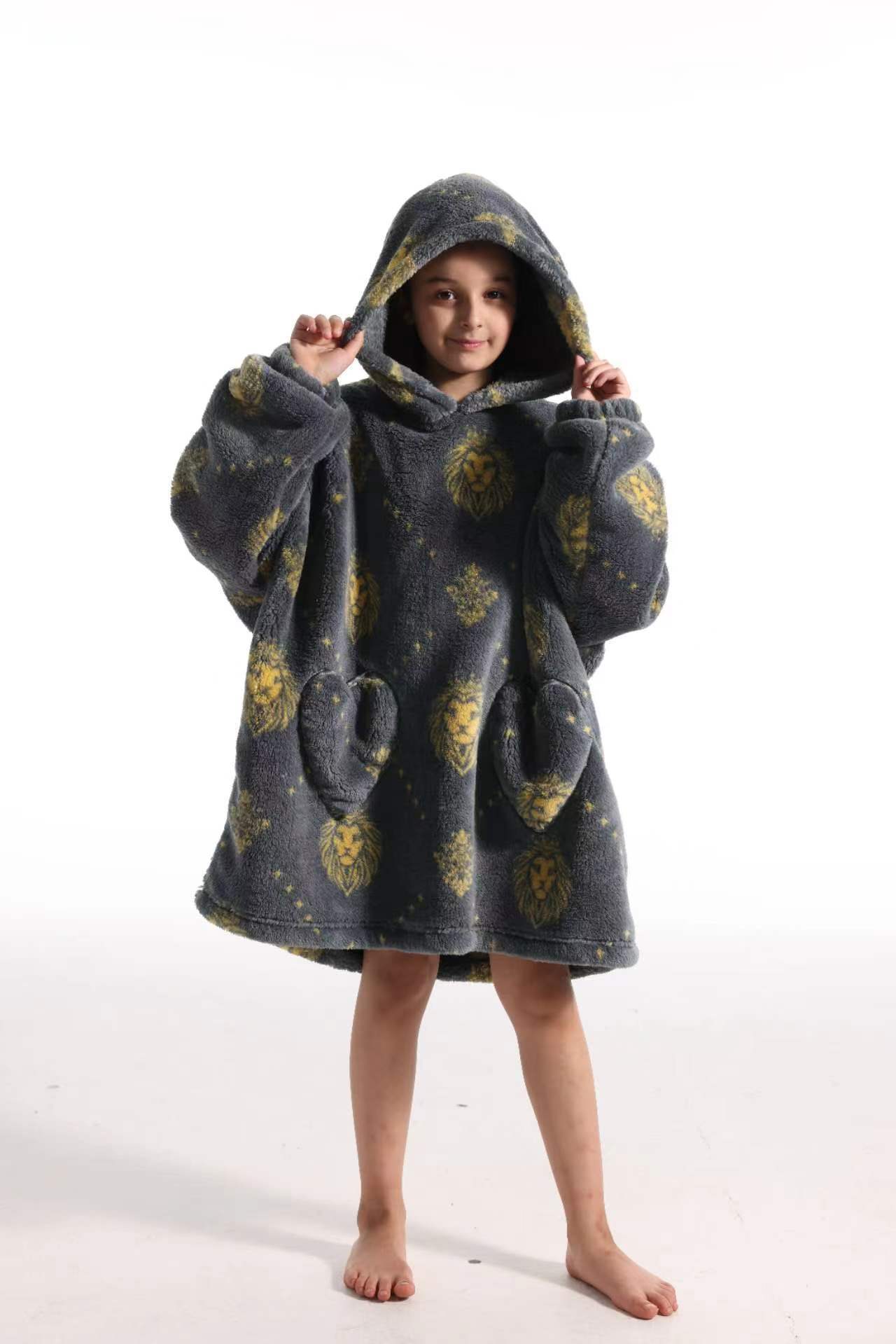 새로운 방한 의류 게으른 풀오버 어린이 잠옷 양고기 벨벳 따뜻한 옷 후드 TV 담요 까마귀 배치