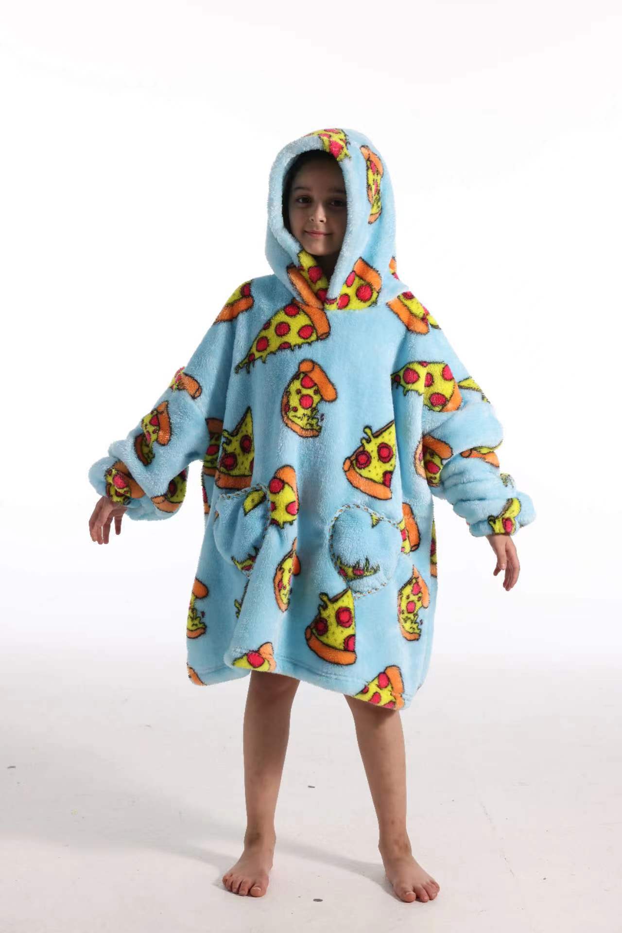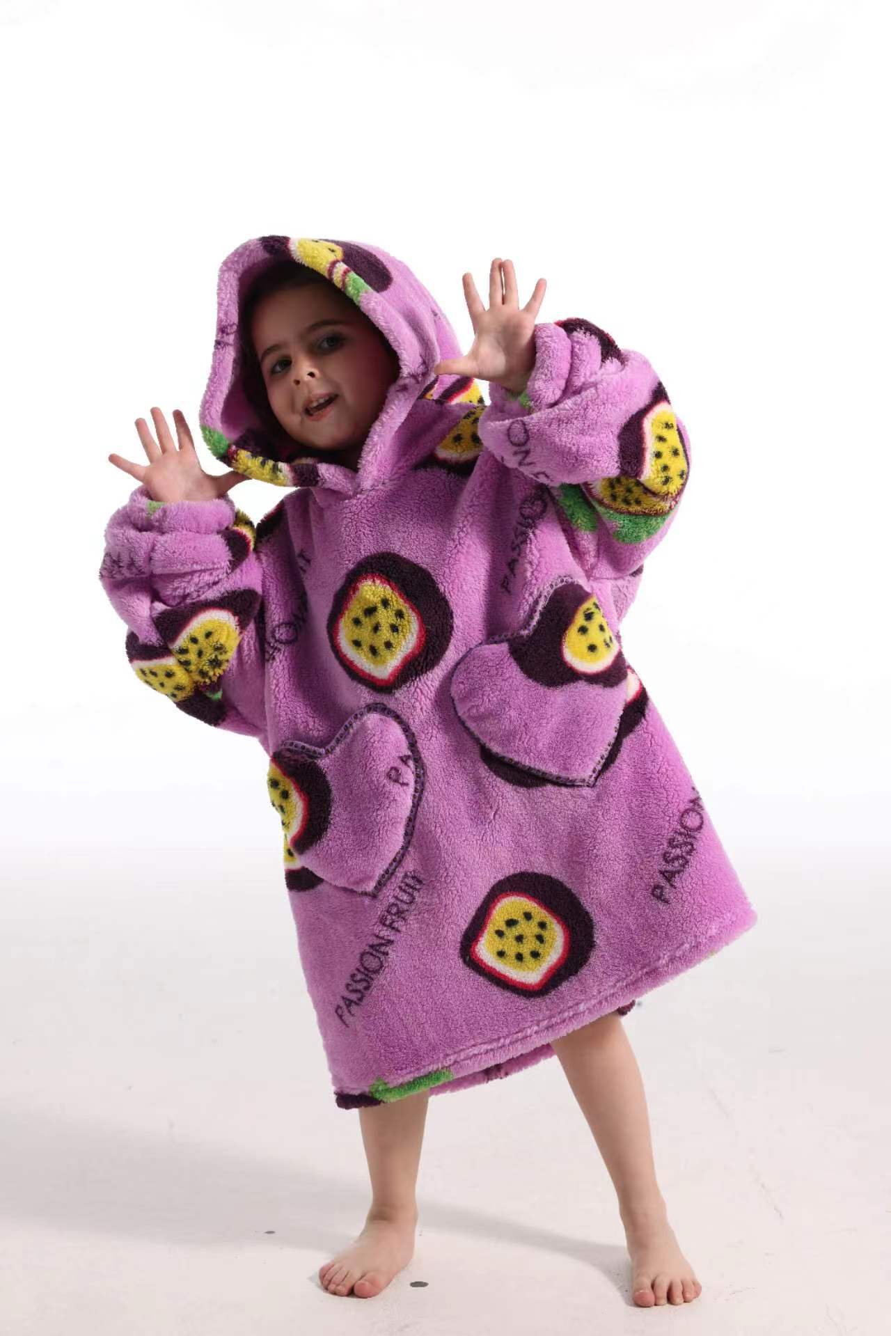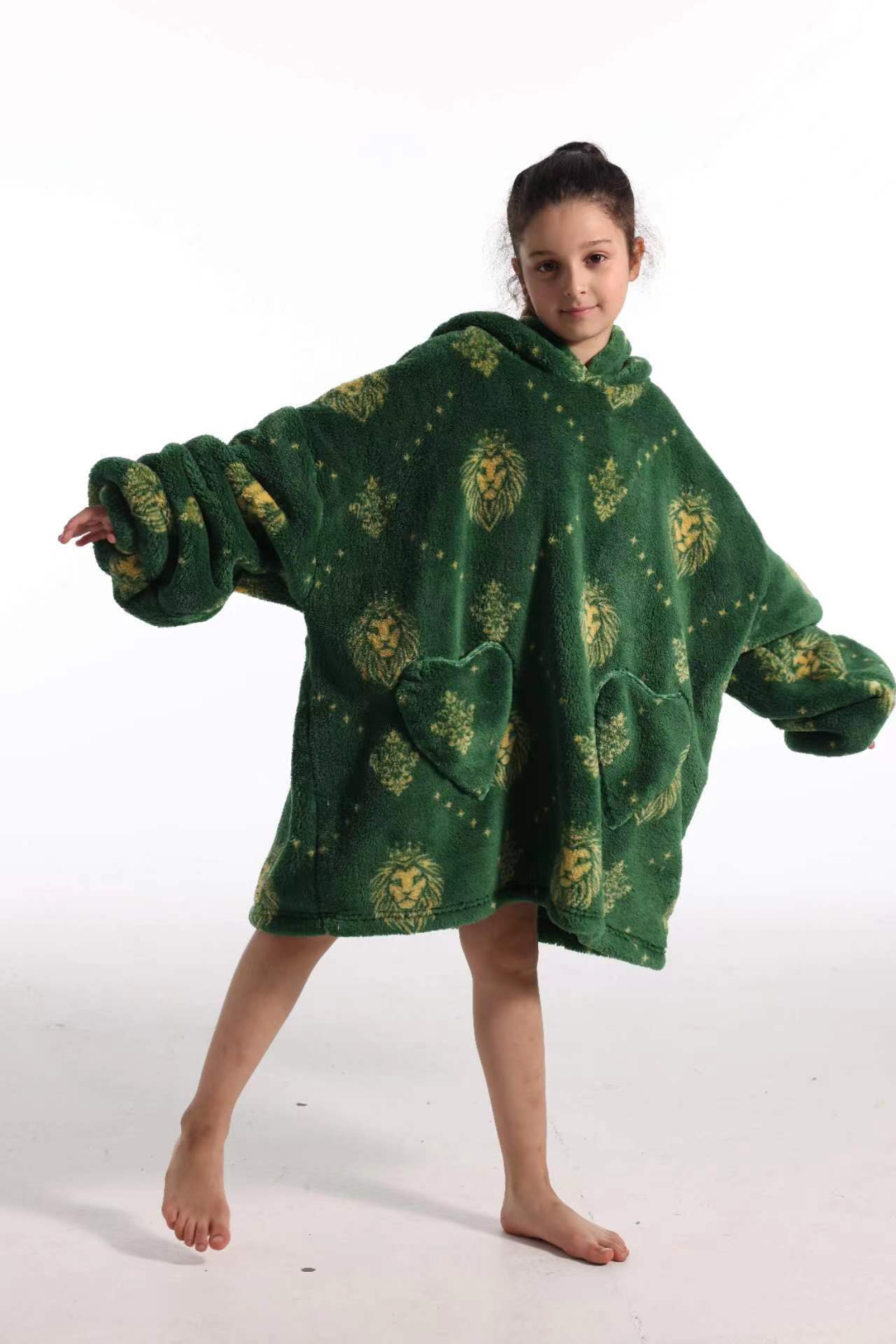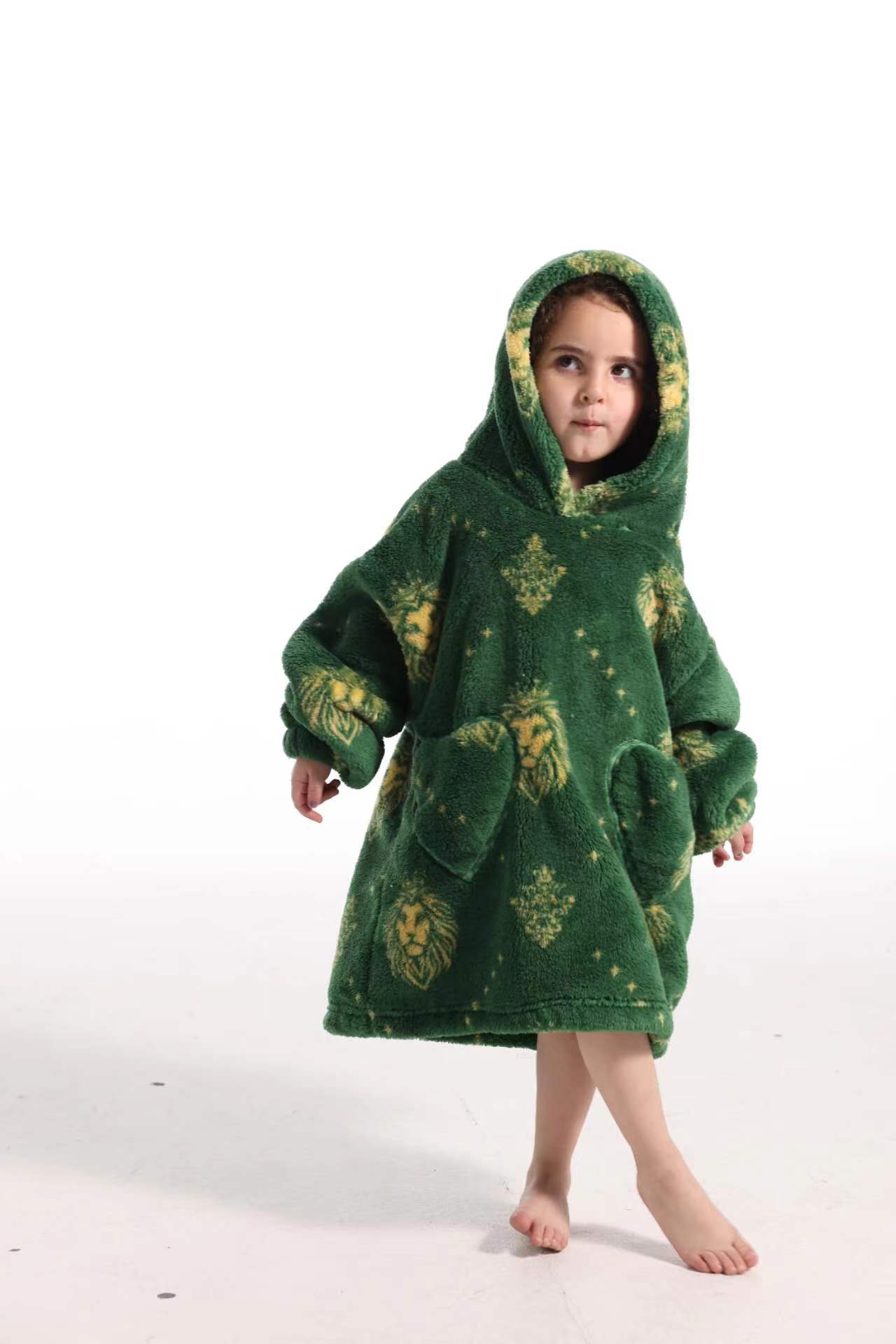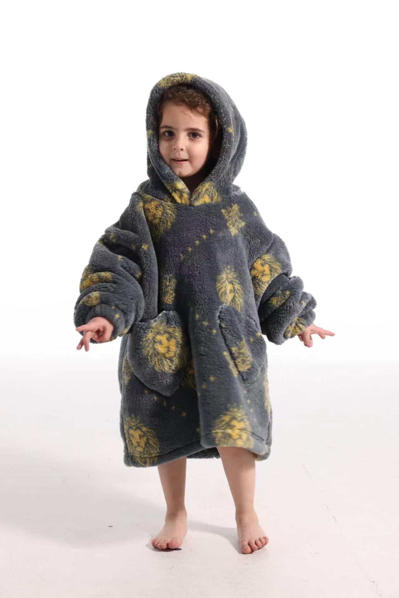 새로운 방한 의류 게으른 풀오버 어린이 잠옷 양고기 벨벳 따뜻한 옷 후드 TV 담요 까마귀 배치