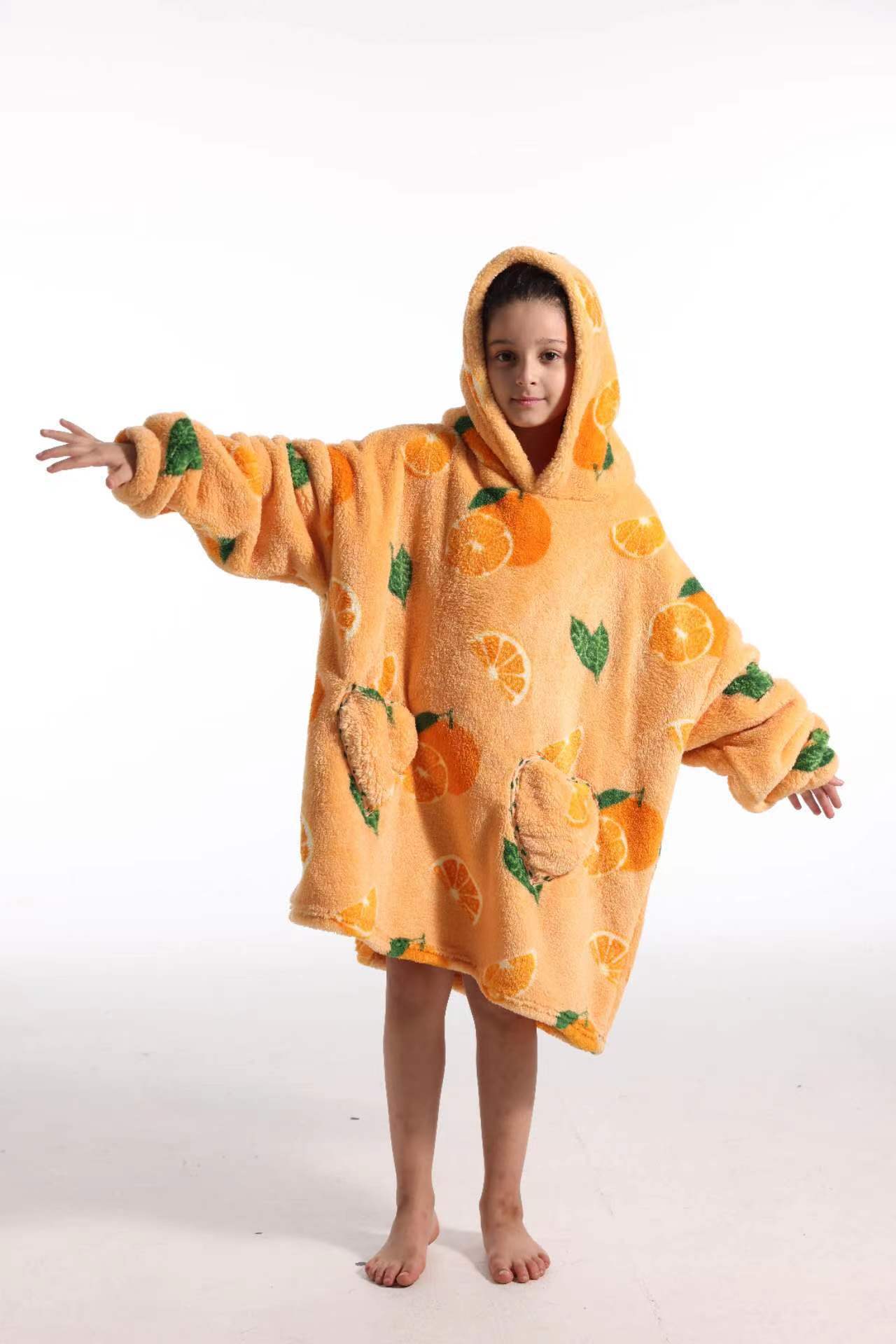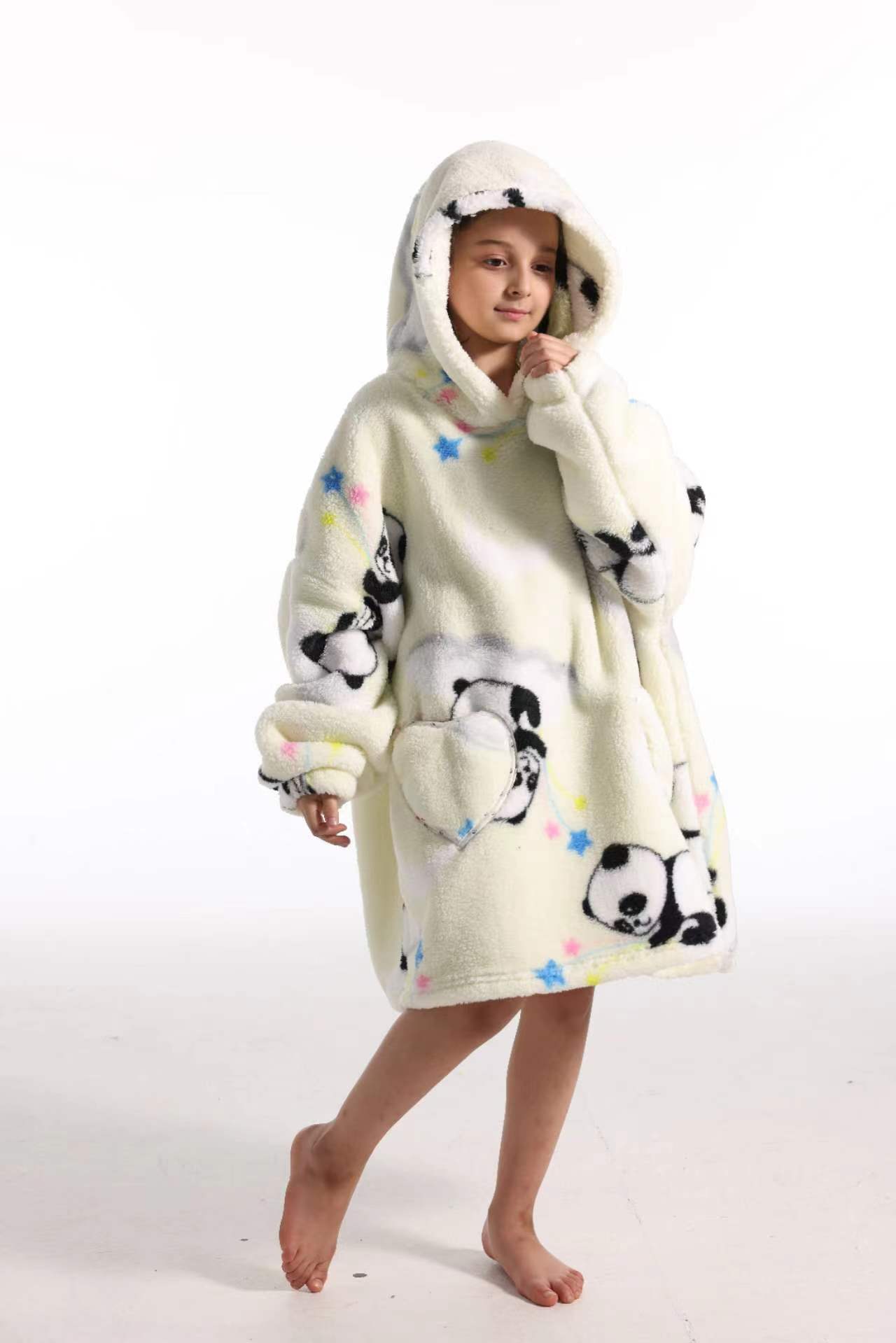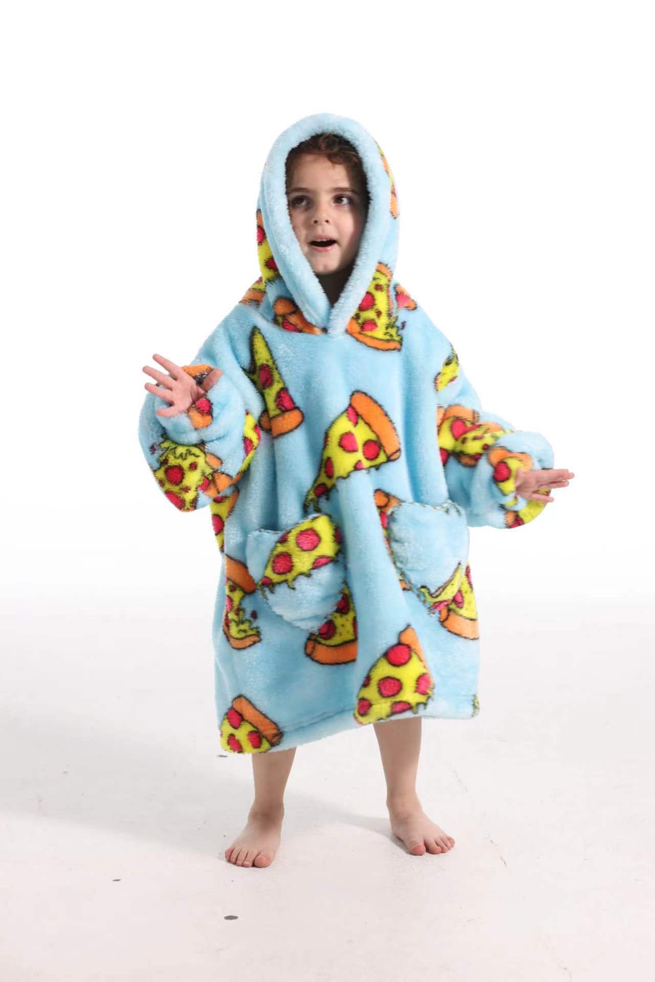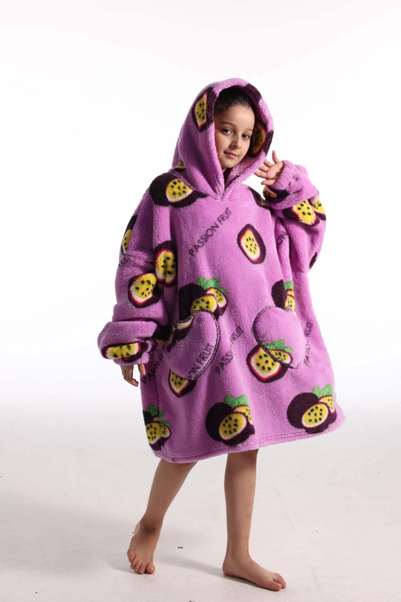 새로운 방한 의류 게으른 풀오버 어린이 잠옷 양고기 벨벳 따뜻한 옷 후드 TV 담요 까마귀 배치
