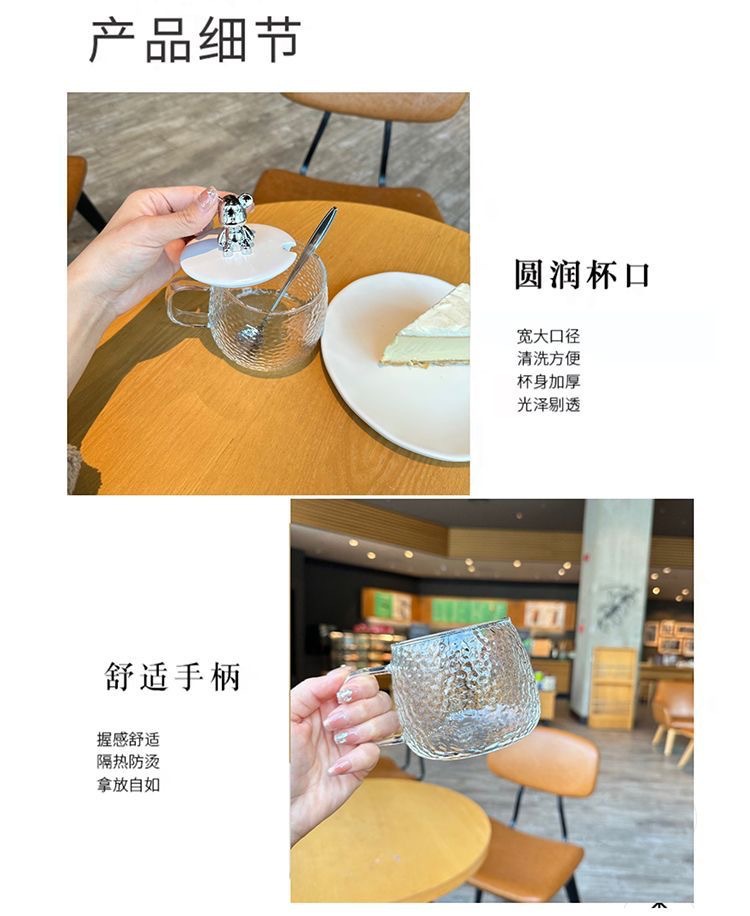 베어 마크 유리 물 컵 빙하 찻잔 가정용 꽃 찻잔 내열 유리 망치 패턴 컵 도매스토어 가기