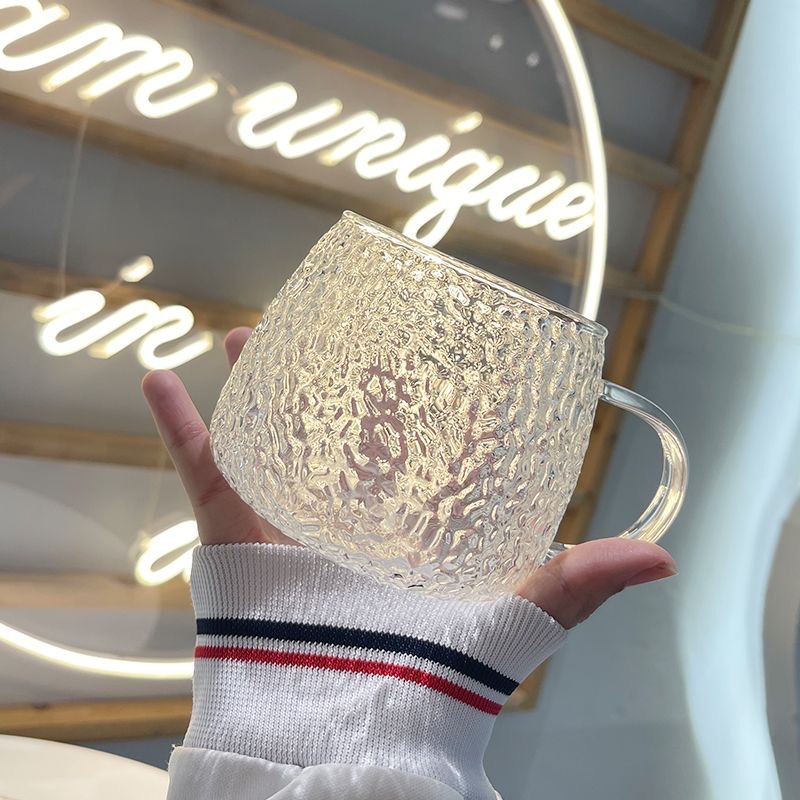 베어 마크 유리 물 컵 빙하 찻잔 가정용 꽃 찻잔 내열 유리 망치 패턴 컵 도매