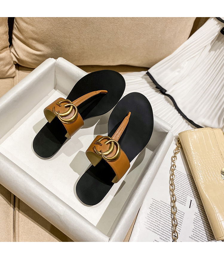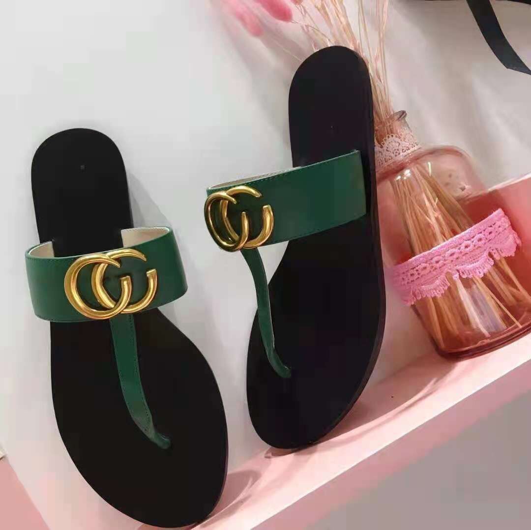 2026 플랫 유럽 및 미국 스타일 미끄럼 방지 천연 가죽 슬리퍼 여성용 gc 클립온 대형 사이즈 비치 슈즈 대외 무역 제조업체 도매스토어 가기