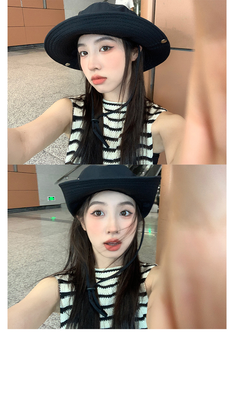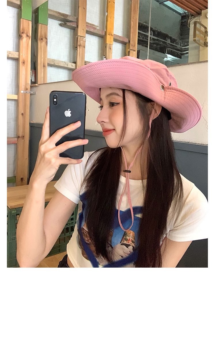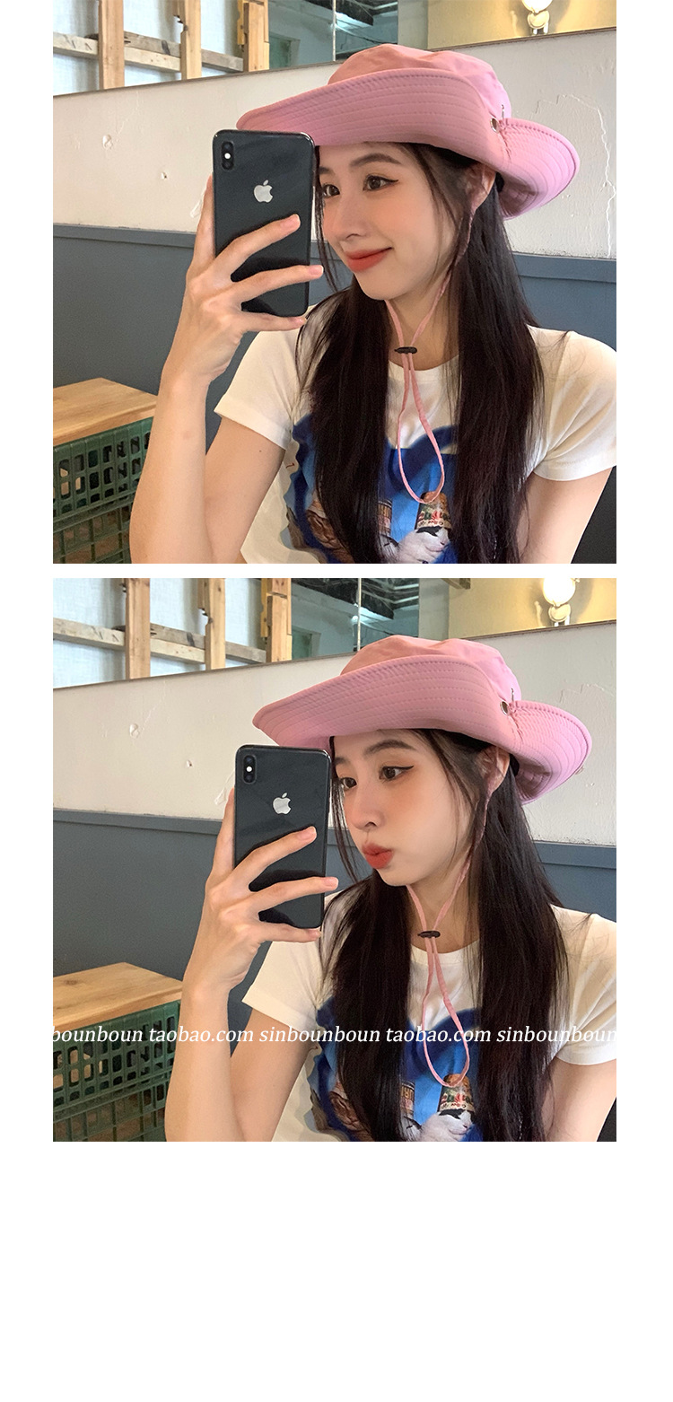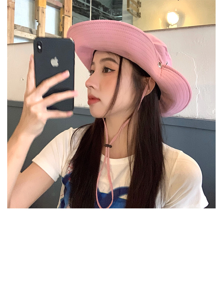 레트로 스타일의 세련된 레이스업 카우보이 모자, 여름 패션 넓은 챙 햇빛 가리개 모자, 여성용 개성 있는 자외선 차단 등산 모자스토어 가기