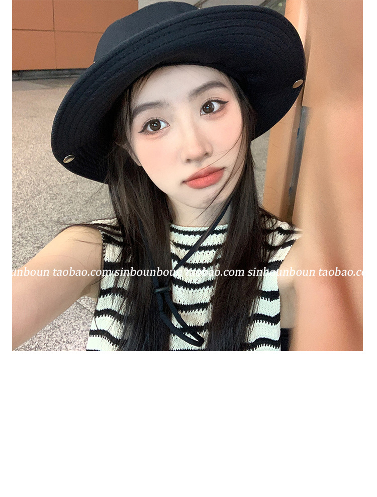 레트로 스타일의 세련된 레이스업 카우보이 모자, 여름 패션 넓은 챙 햇빛 가리개 모자, 여성용 개성 있는 자외선 차단 등산 모자