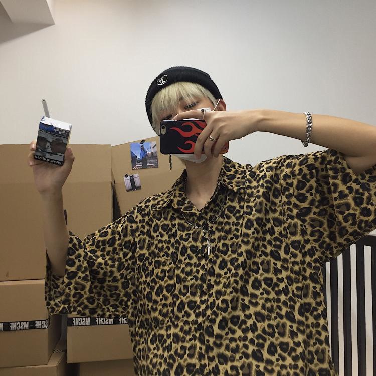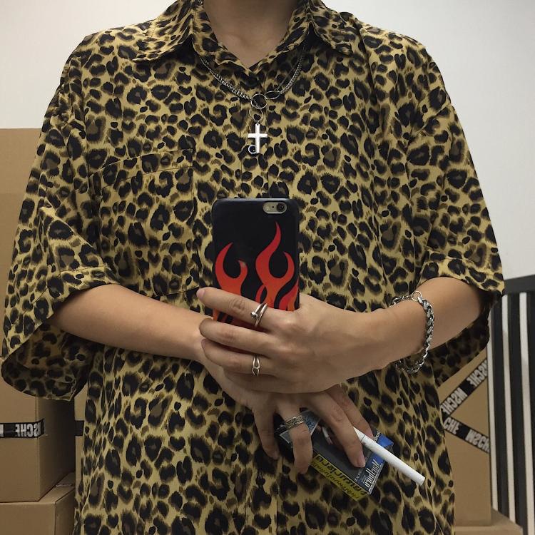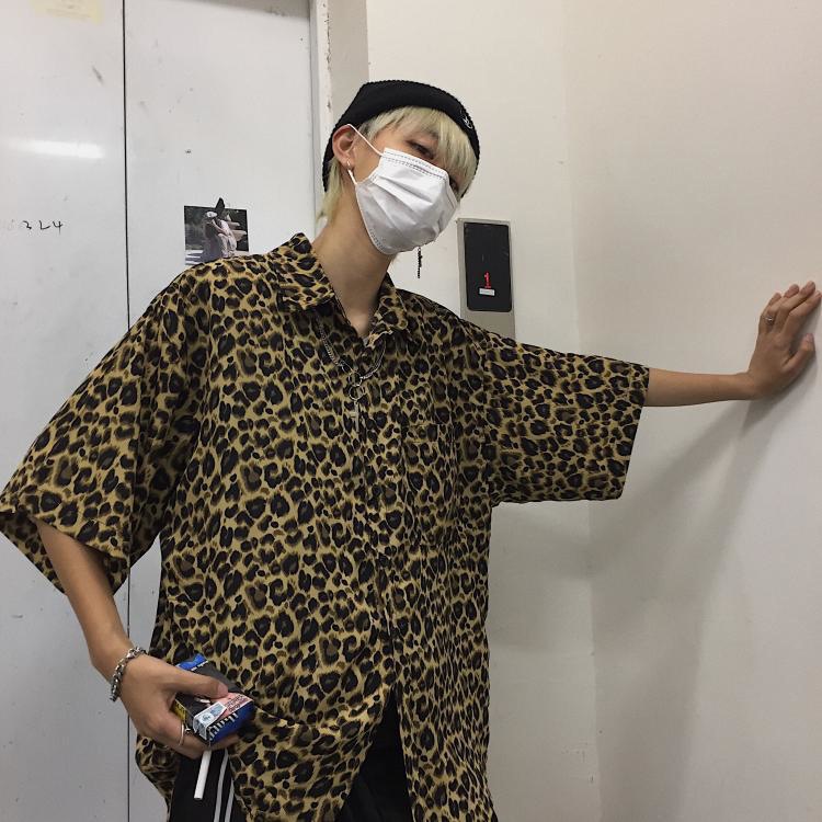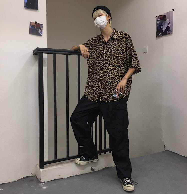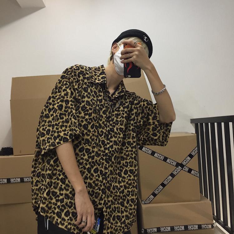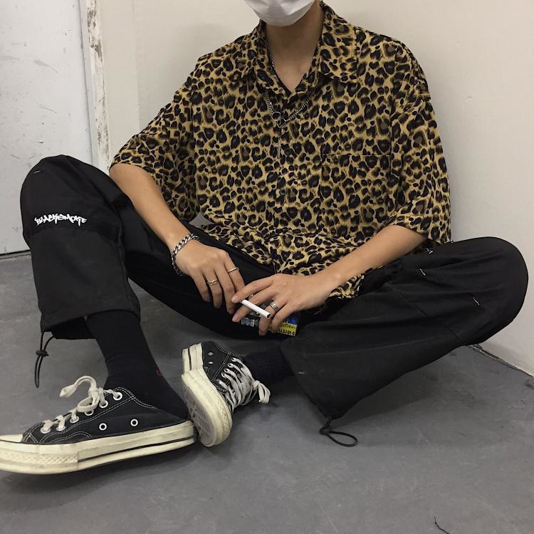 거리 잘 생긴 셔츠 남성 여름 홍콩 스타일 패션 브랜드 복고풍 레오파드 무늬 반팔 셔츠 애호가 느슨한 최고 대외 무역스토어 가기