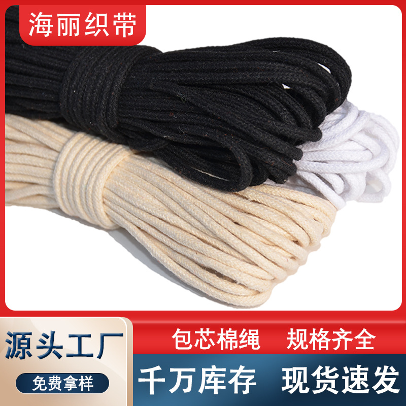 코어 포장 면화 로프 제조 업체 도매 이 흰색 검정 표백 테두리 로프 번들 짠 태피스트리 라운드 배관 두꺼운 로프