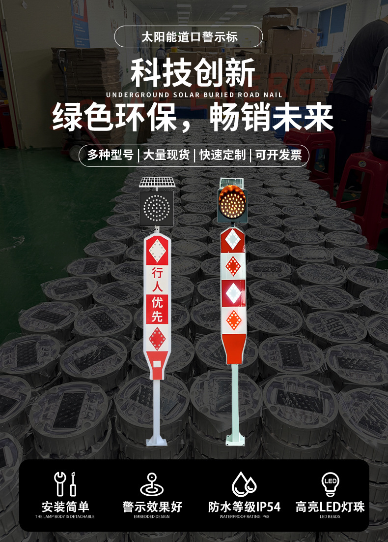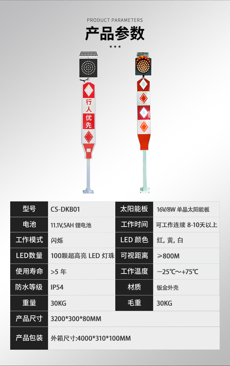 태양광 도로교차로 표지판 경고 기둥 LED 교통 표지판 기둥 지시등 차량 도로 안전 경고등 충돌 방지 기둥