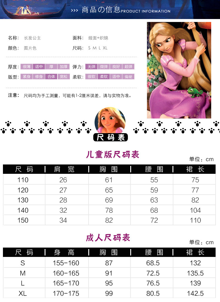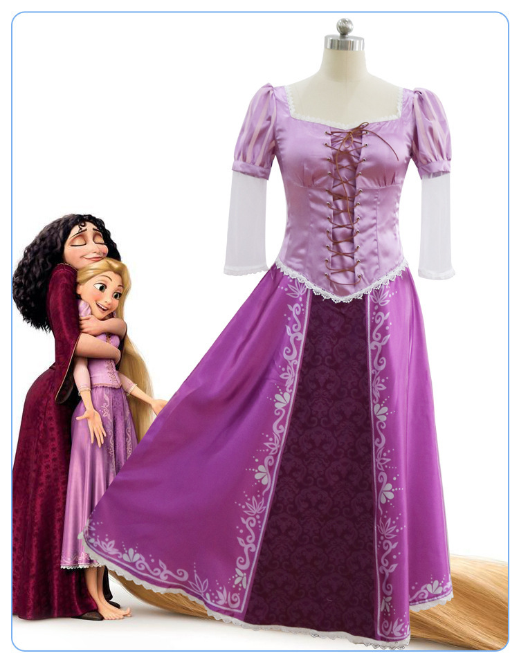 애니메이션 라푼젤과 함께하는 여정과 같은 스타일의 코스프레 의상, 긴 머리 라푼젤 공주 코스프레 의상, 할로윈 공주 드레스