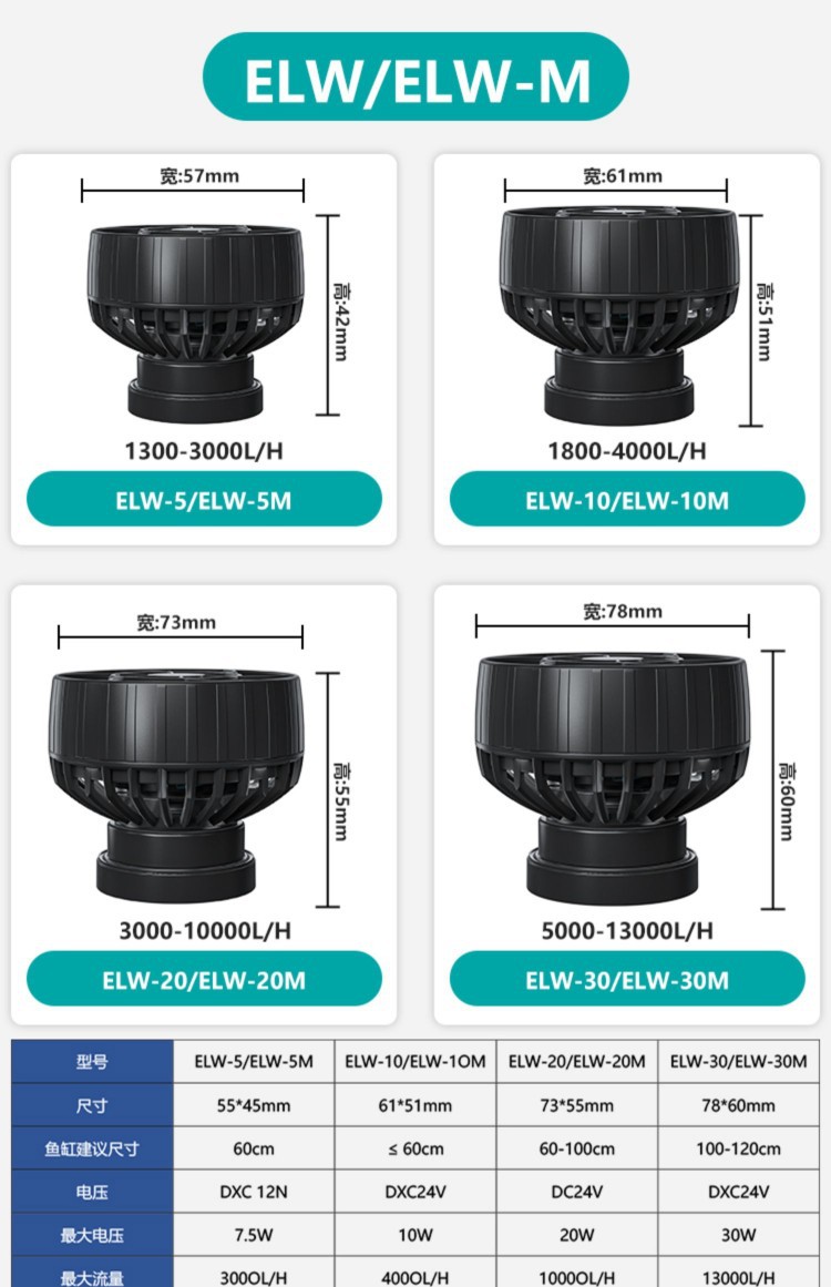 Jebao의 새로운 ELW ELW+M EOW 미니 웨이브 펌프 수조 주파수 변환 웨이브 펌프는 담수 및 해수 모두에 적합합니다.스토어 가기