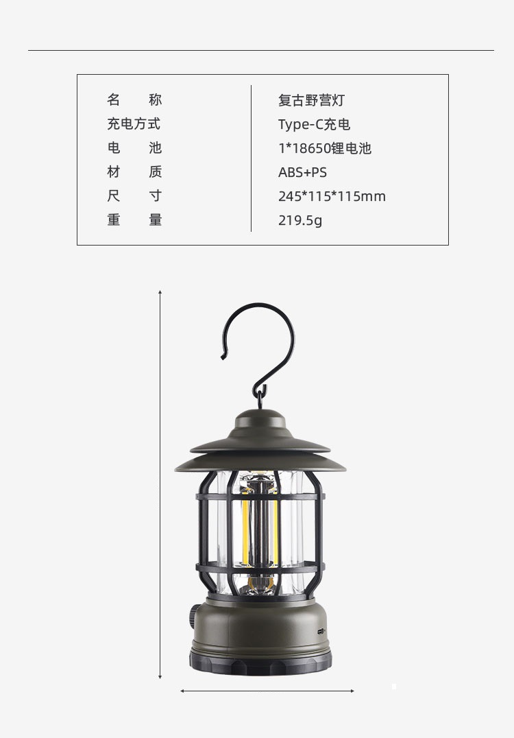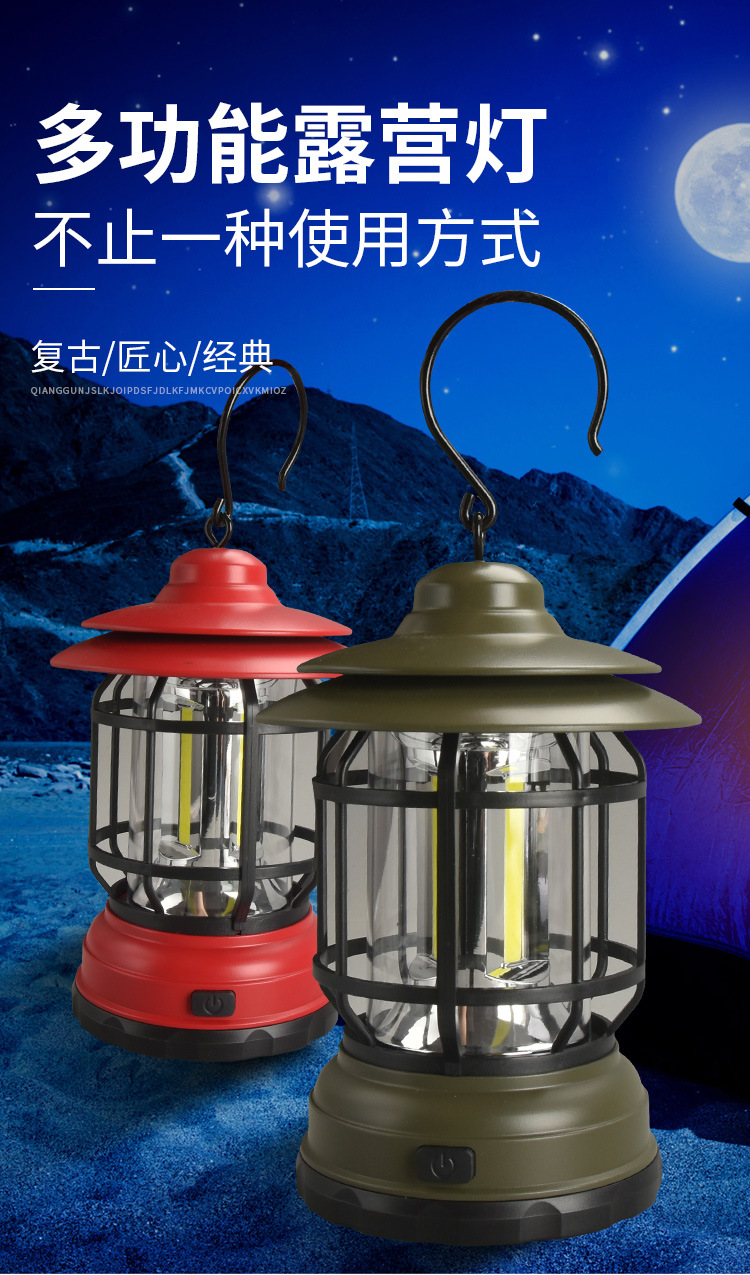 국경 간 새로운 빈티지 캠핑 조명 캠핑 조명 휴대용 충전식 비상 조명 야외 휴대용 캠핑 조명