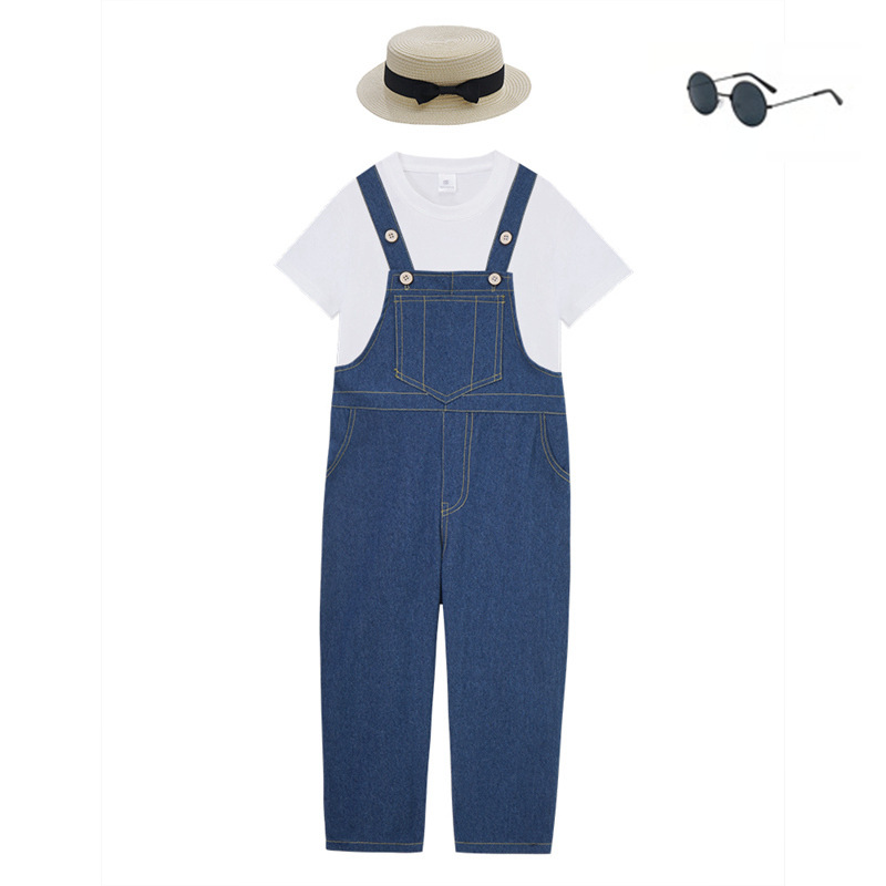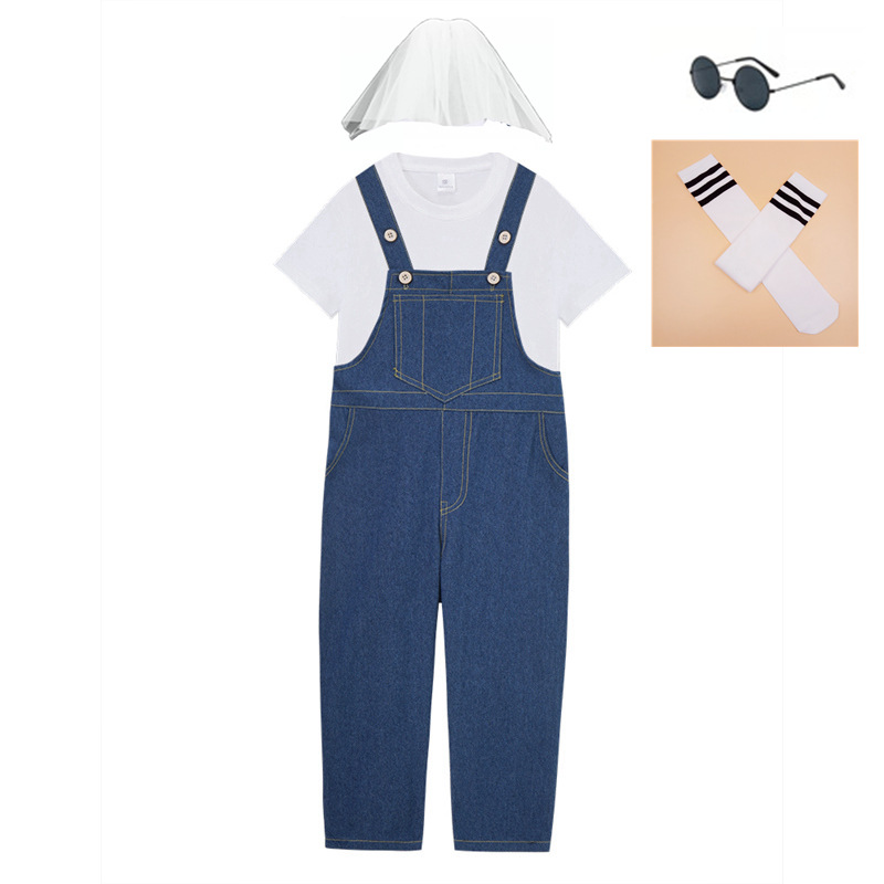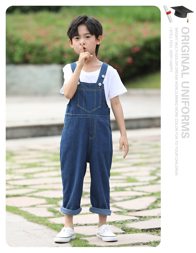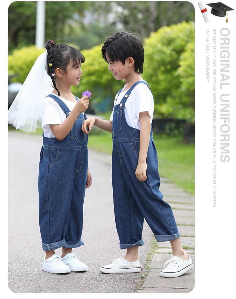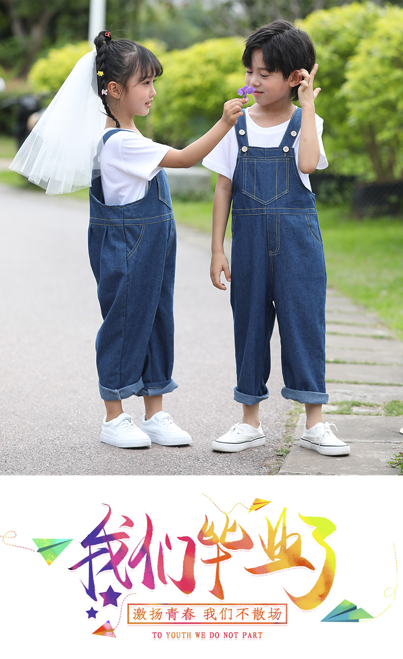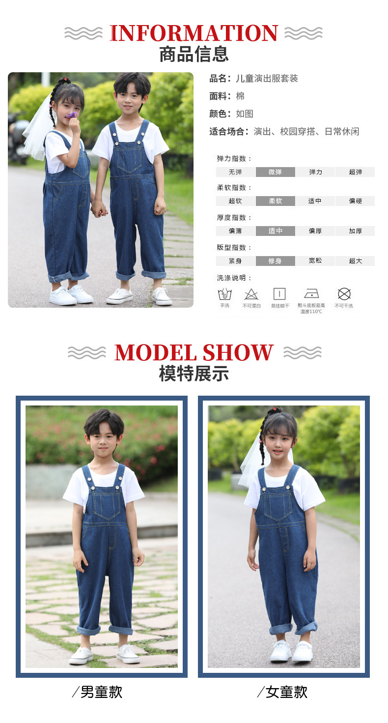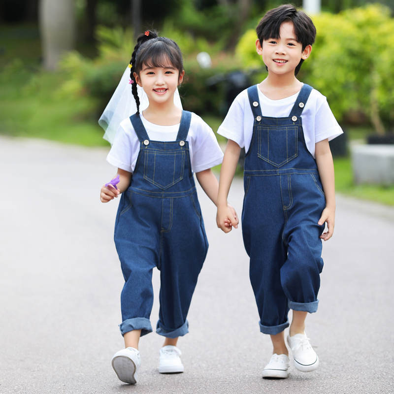 데님 멜빵바지 세트 초등학생 공연복 유치원 댄스복 남아 중국풍