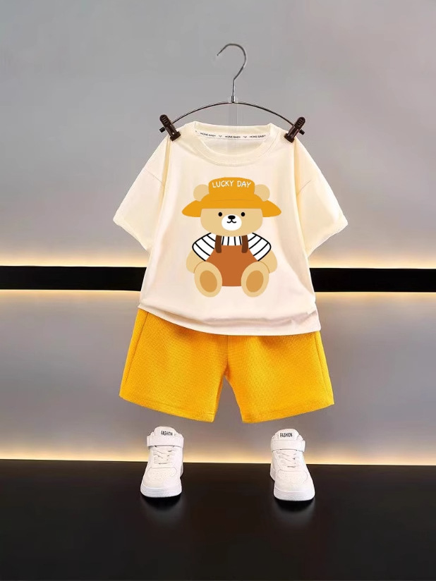 새로운 아동복 여름 어린이 세트 캐주얼 느슨한 옷 소년 짧은 소매 와플 아기 여름 도매