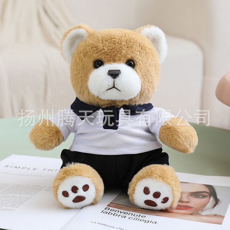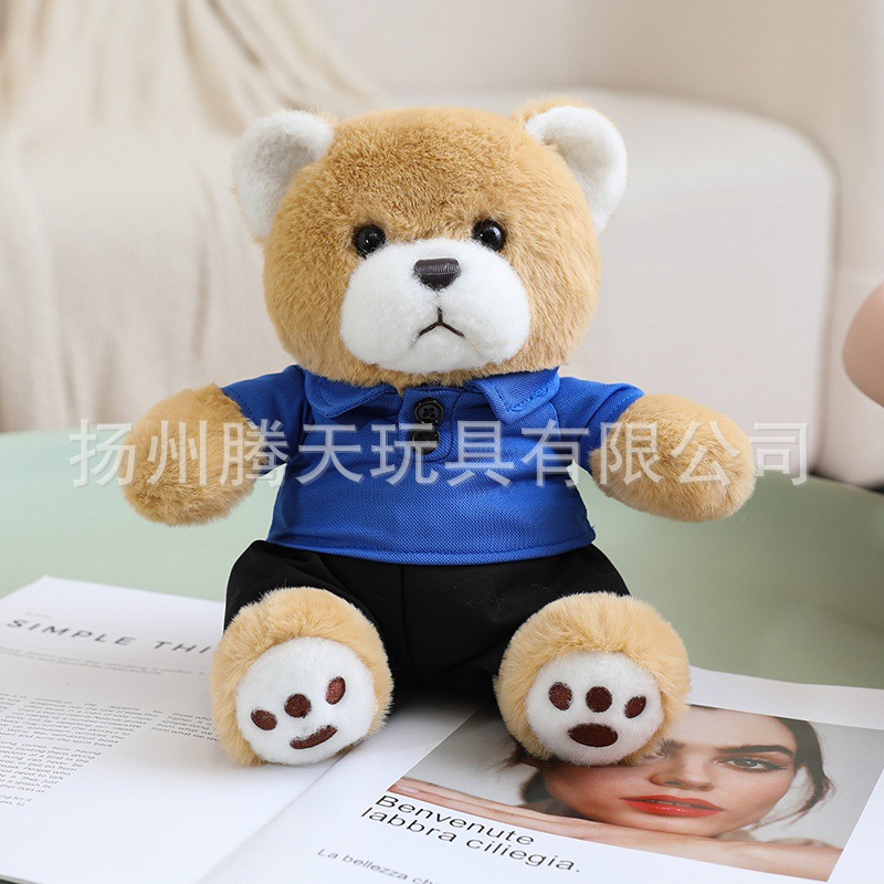 • 짙은 갈색 곰 인형 - 파란색 옷, 23cm/0.14kg