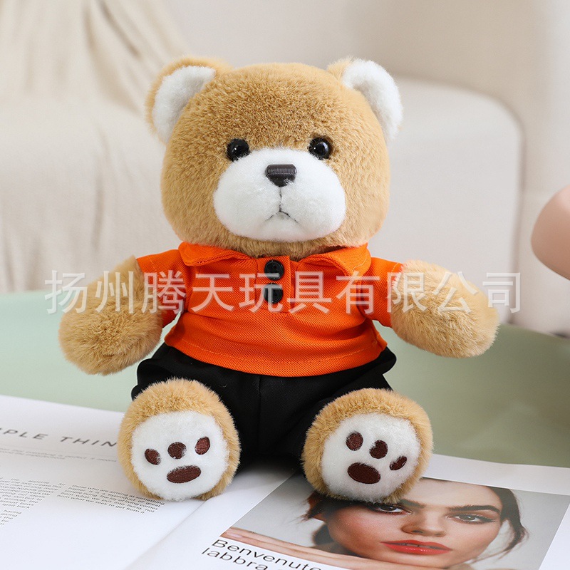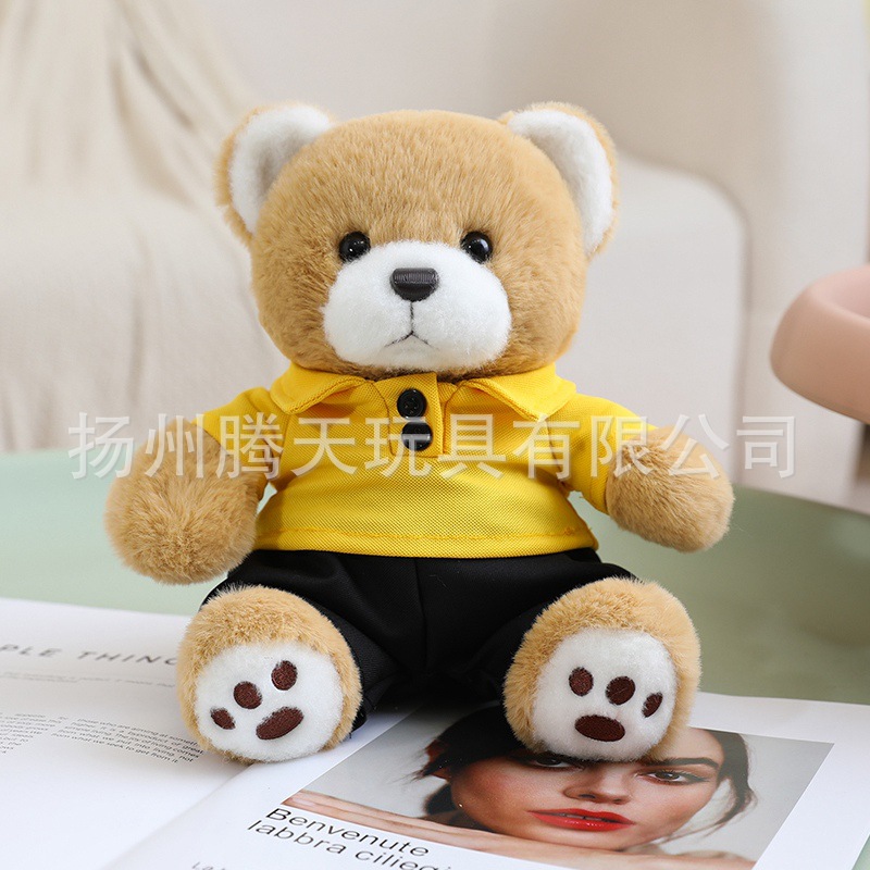 • 짙은 갈색 곰 인형 - 노란색 옷, 18cm/0.07kg
