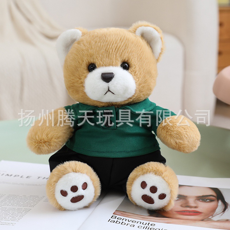 • 짙은 갈색 곰 인형 - 초록색 옷, 18cm/0.07kg