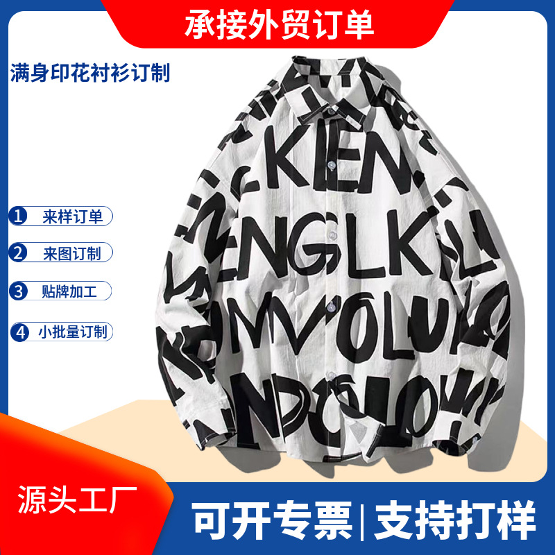 대외 무역 맞춤 유럽과 미국 한국식 전장 인쇄 긴 소매 셔츠 남성용 패션 브랜드 남성 공장 맞춤 가공스토어 가기