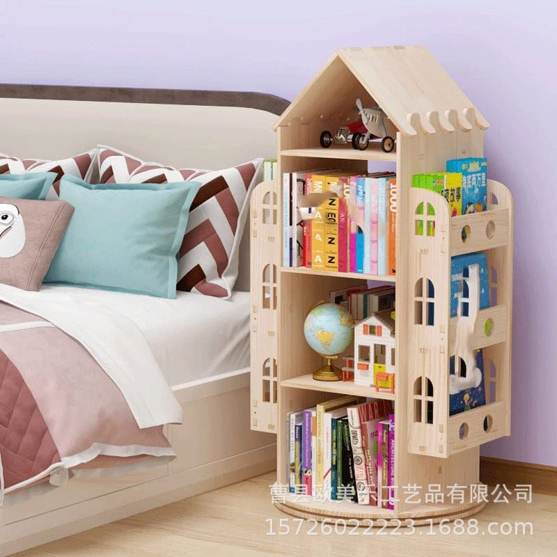 360 도 단단한 나무 어린이 회전 책장 바닥 학생 그림책 랙 간단한 다층 거실 보관 랙스토어 가기