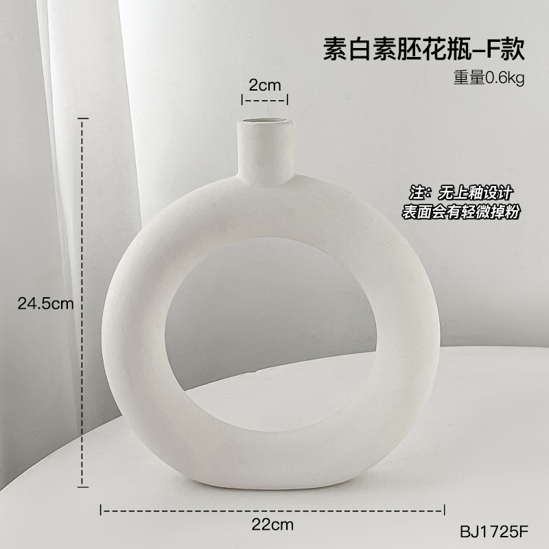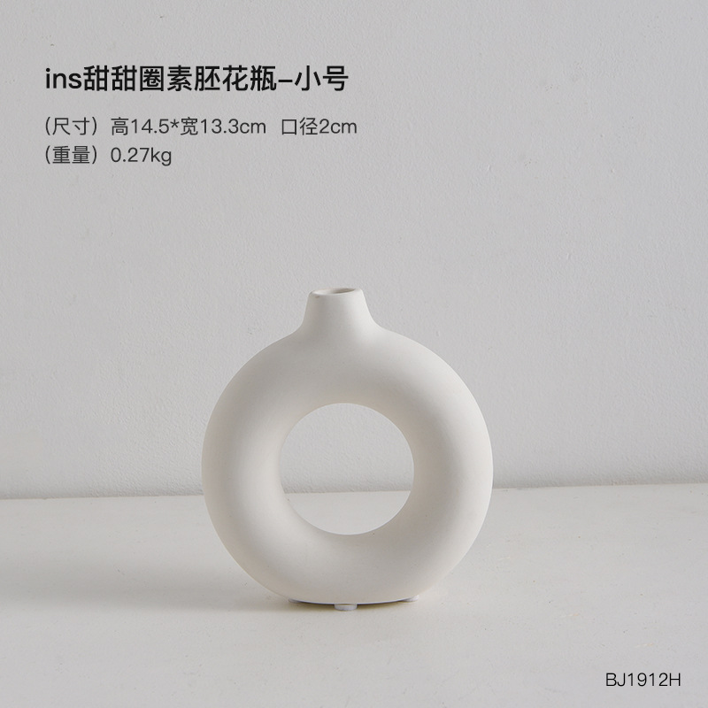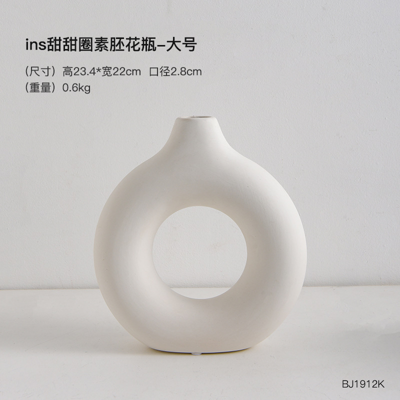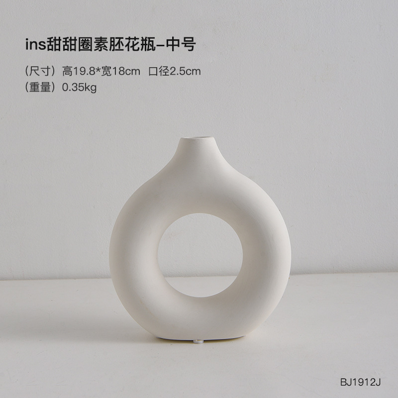 欧式陶瓷纯白甜甜圈花瓶家居客厅样板间软装饰品创意花瓶花器批发