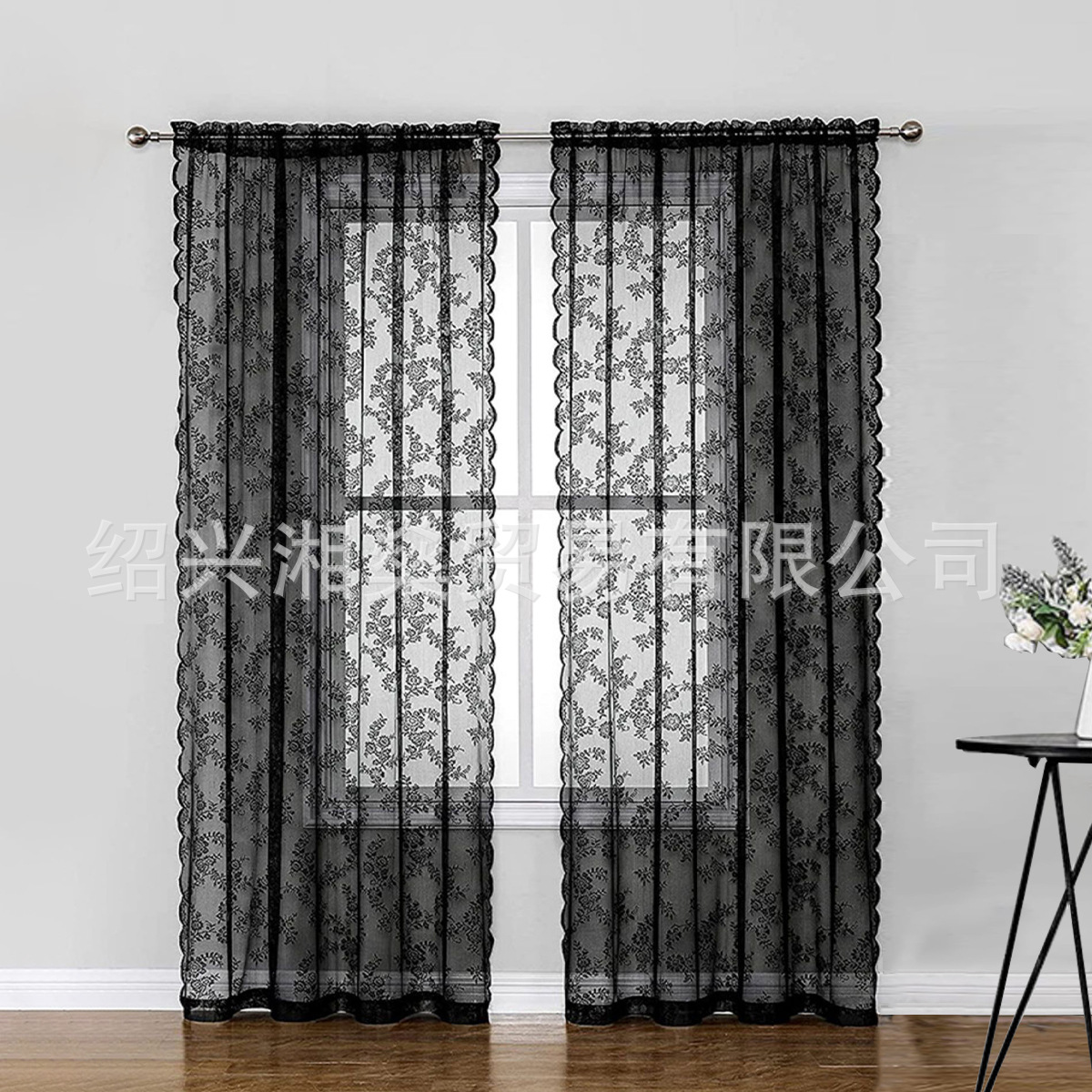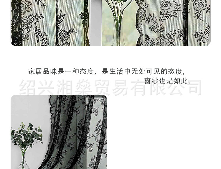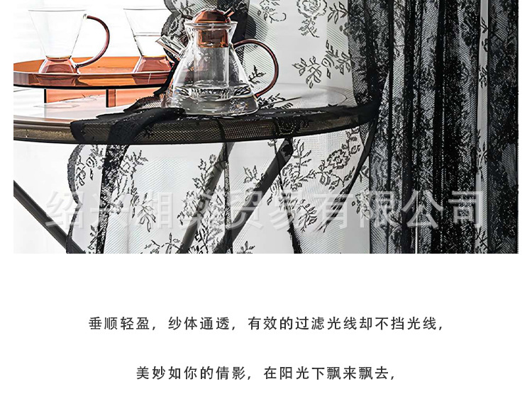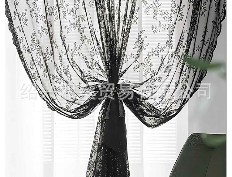 2025 국경 간 아마존 유럽과 미국 홈 레이스 거즈 커튼 블랙 독일 커튼 침실 거실 반 차광 완제품 커튼스토어 가기