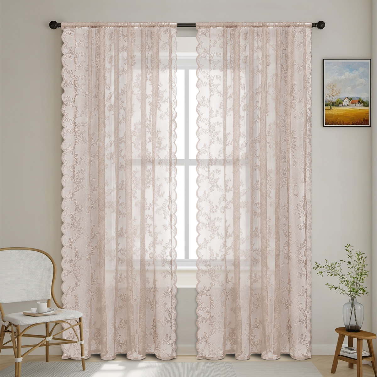 • 베이지색 레이스 커튼봉