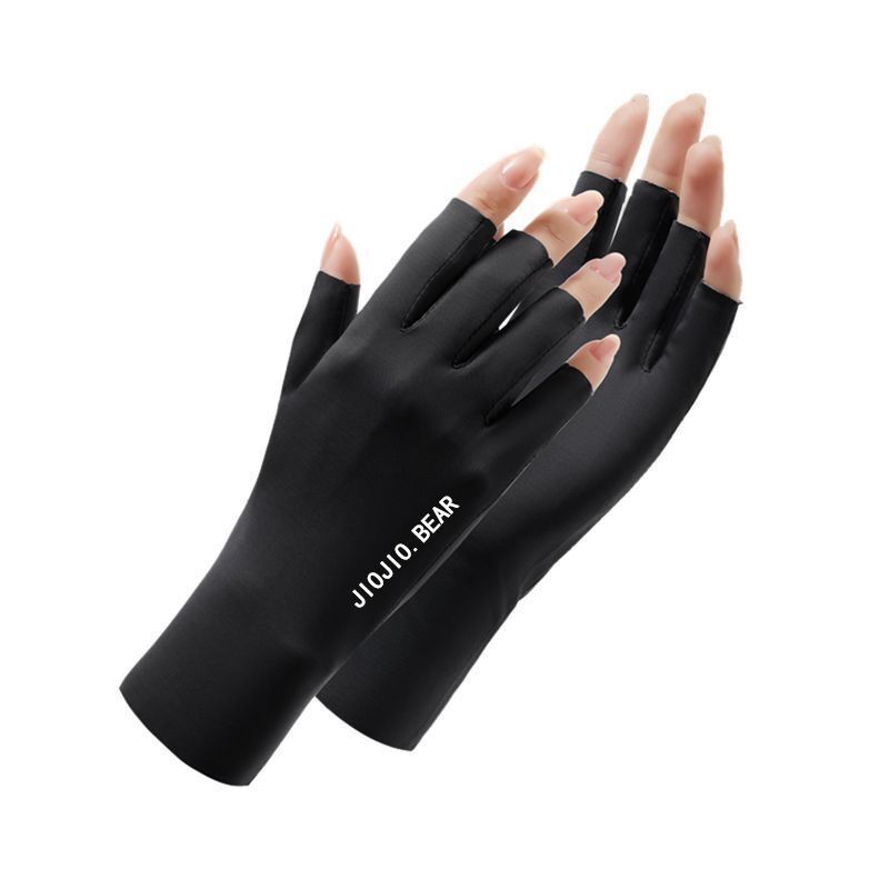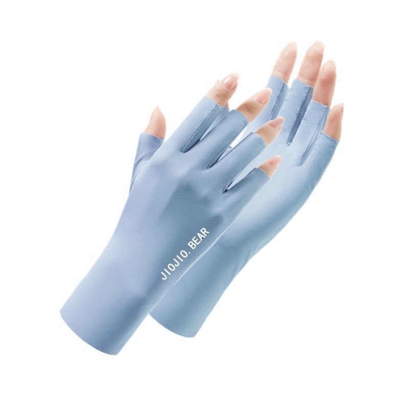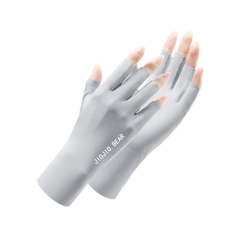 남성과 여성을위한 아이스 실크 자외선 차단제 이슬 손가락 장갑 여름 자외선 차단 야외 차 따기 네일 아트 운전 통기성 얇은 섹션