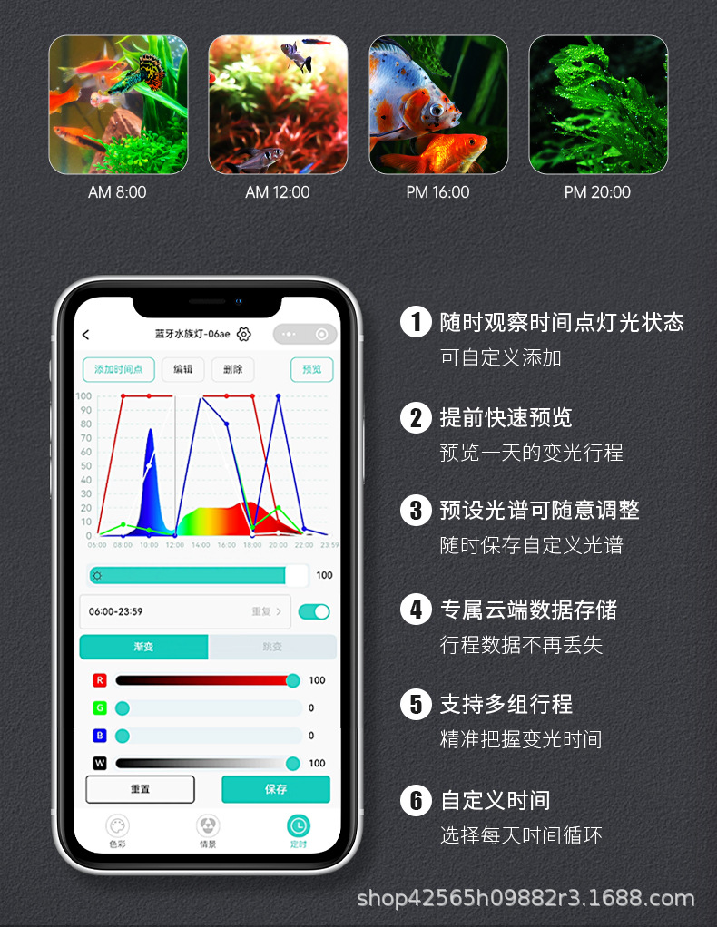 어항 조명 led 방수 전체 스펙트럼 전문 하이라이트 휴대 전화 제어 지능형 타이밍 디밍 조류 폭발 브래킷 램프