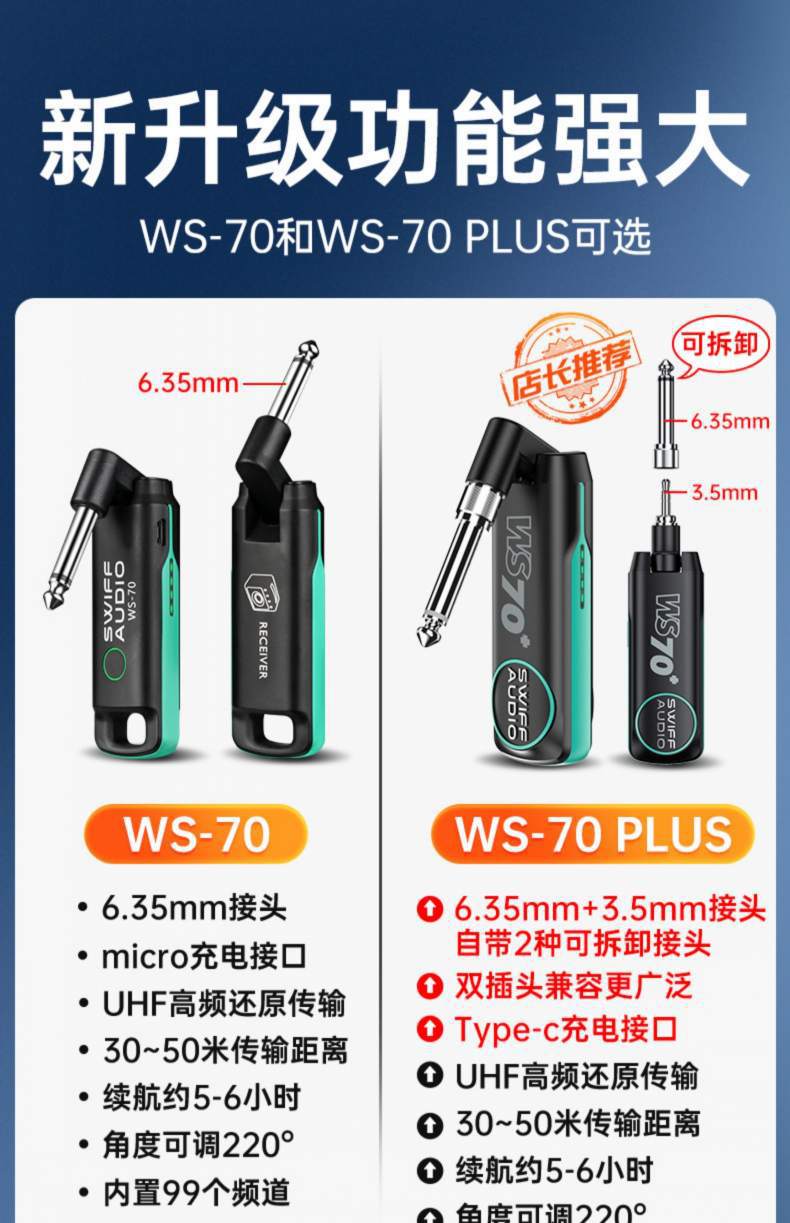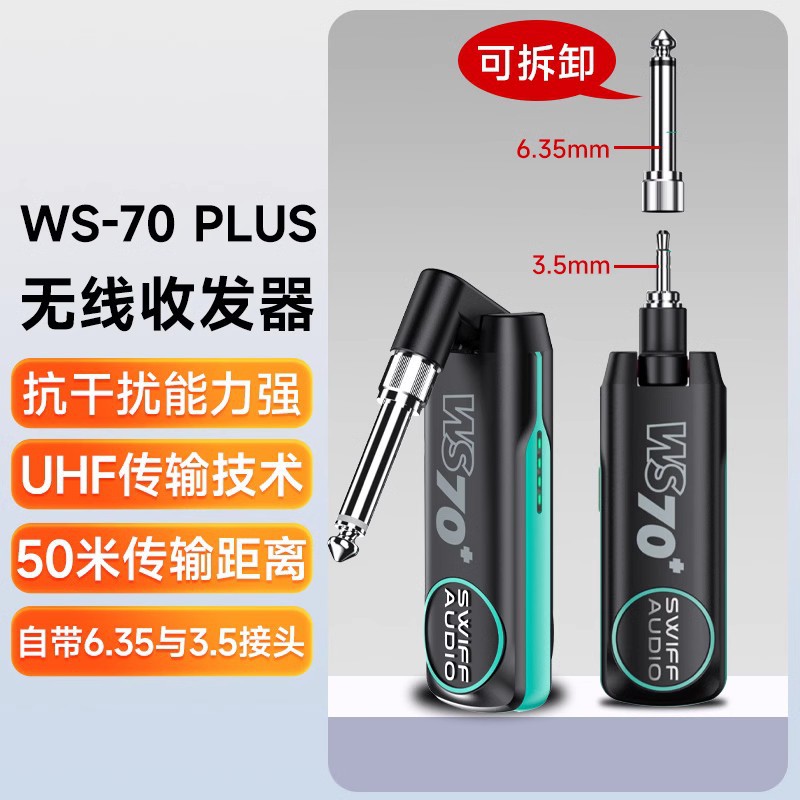 Ruifu WS70 일렉트릭 기타 무선 송신기 수신기 전기 송풍관 연결 블루투스 전송 무선 오디오 트랜시버
