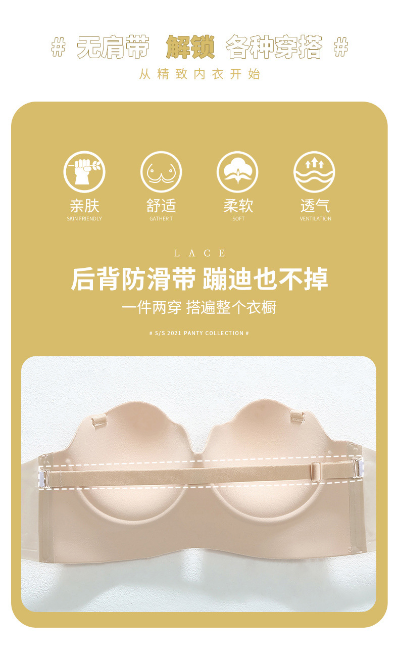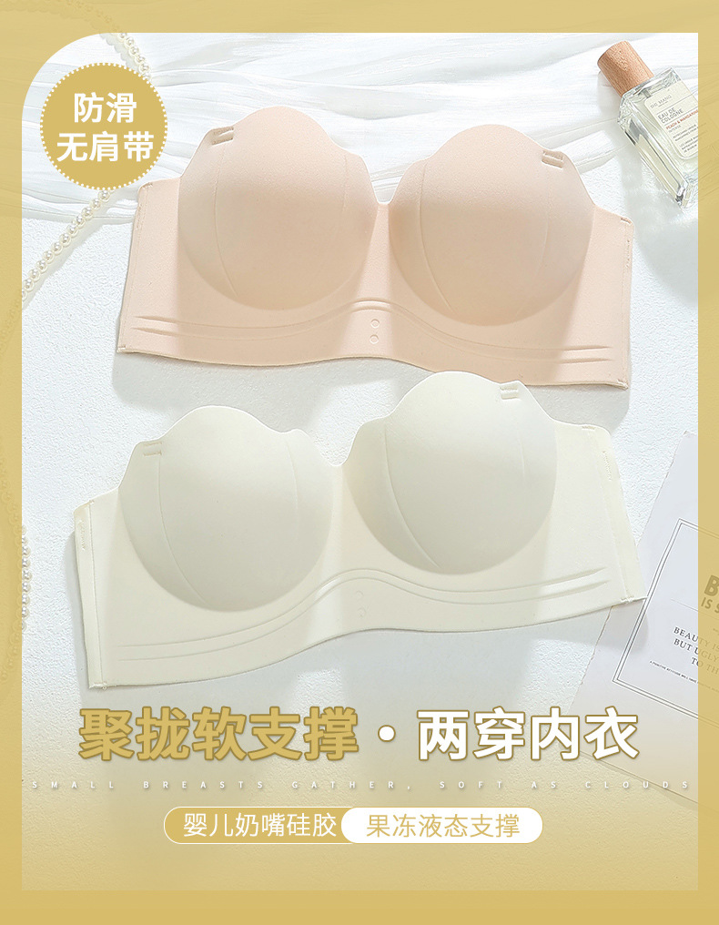끈이 없는 속옷 여자의 푸시 업 미끄럼 방지 작은 가슴 쇼케이스 안티 워킹 랩 튜브 탑 특별한 보이지 않는 아름다운 뒤 브래지어 결혼식 원피스스토어 가기