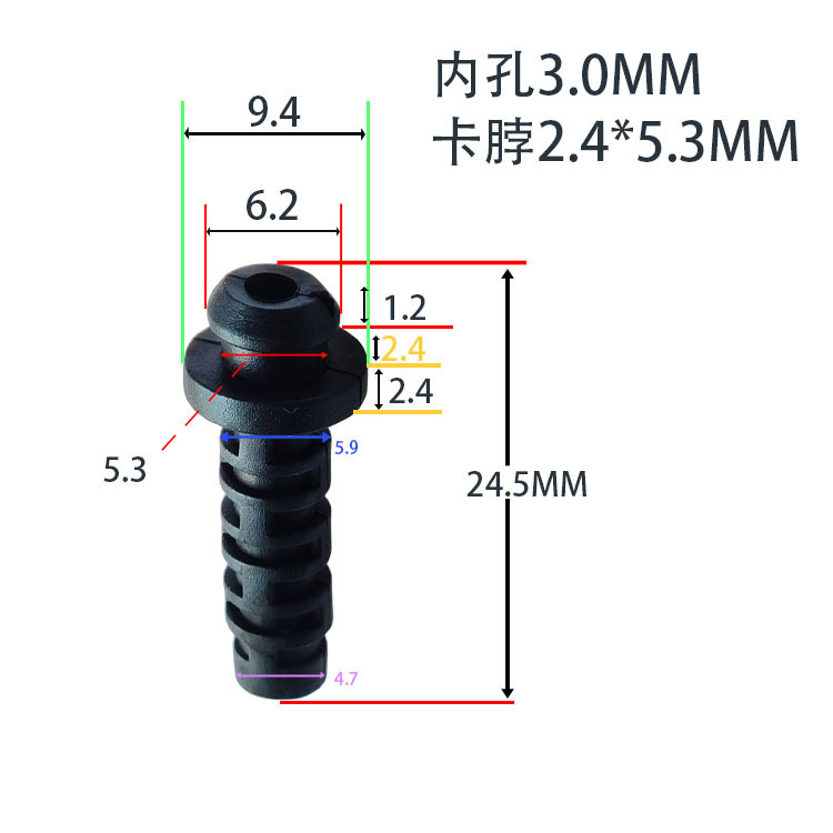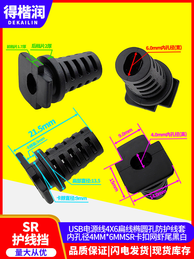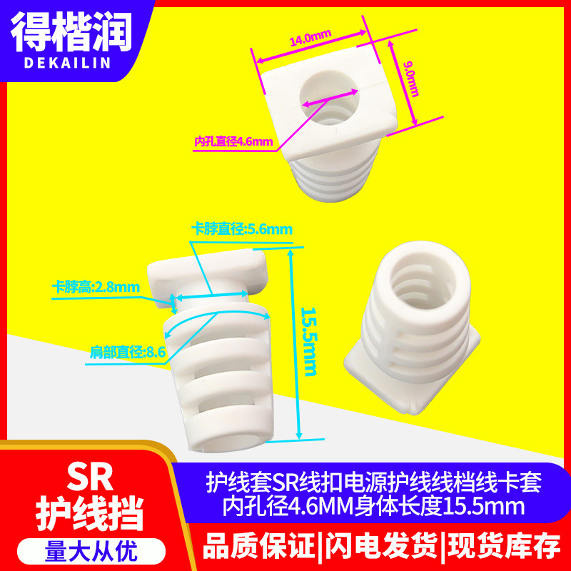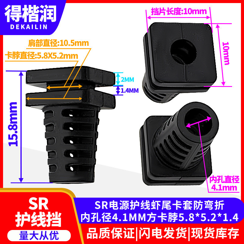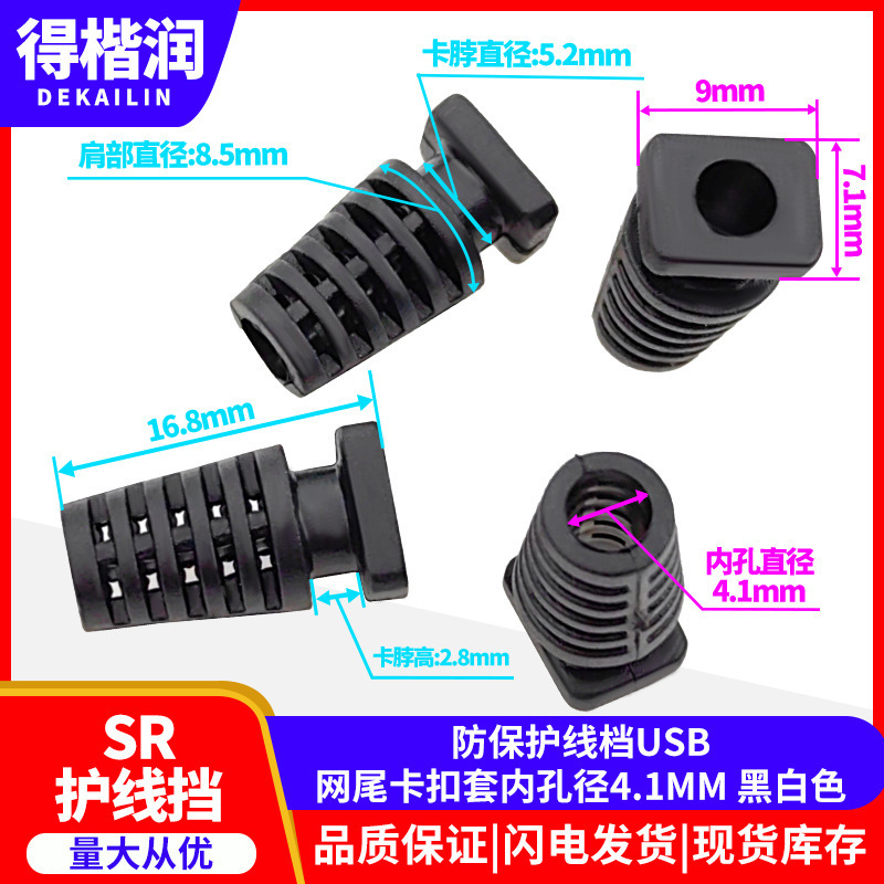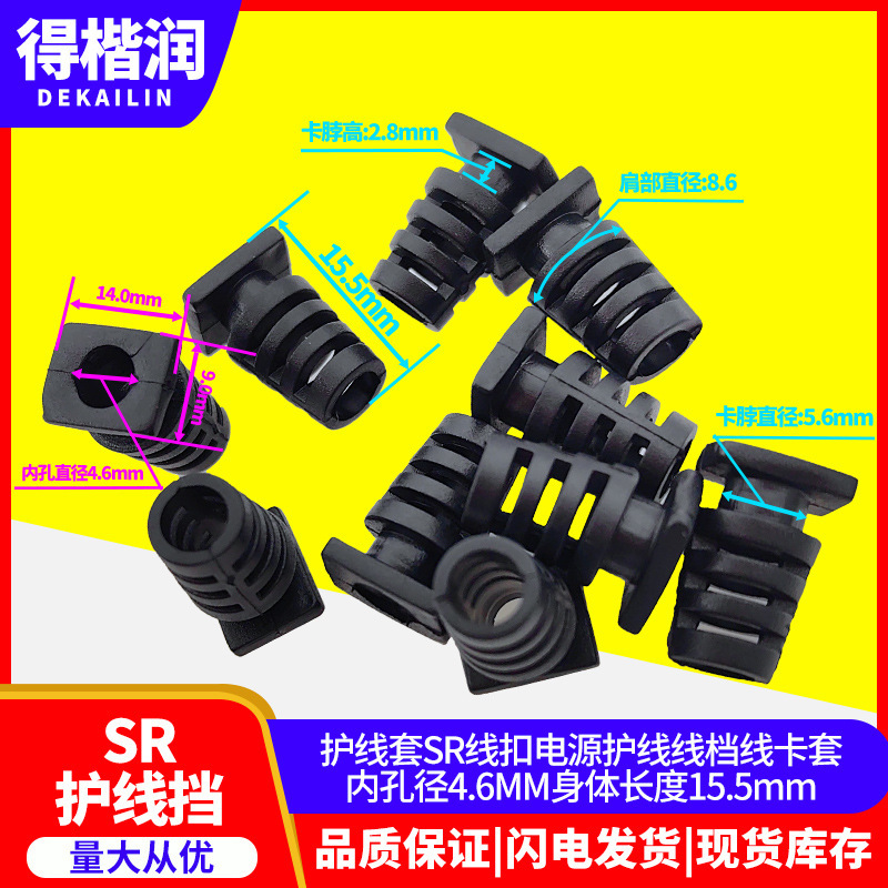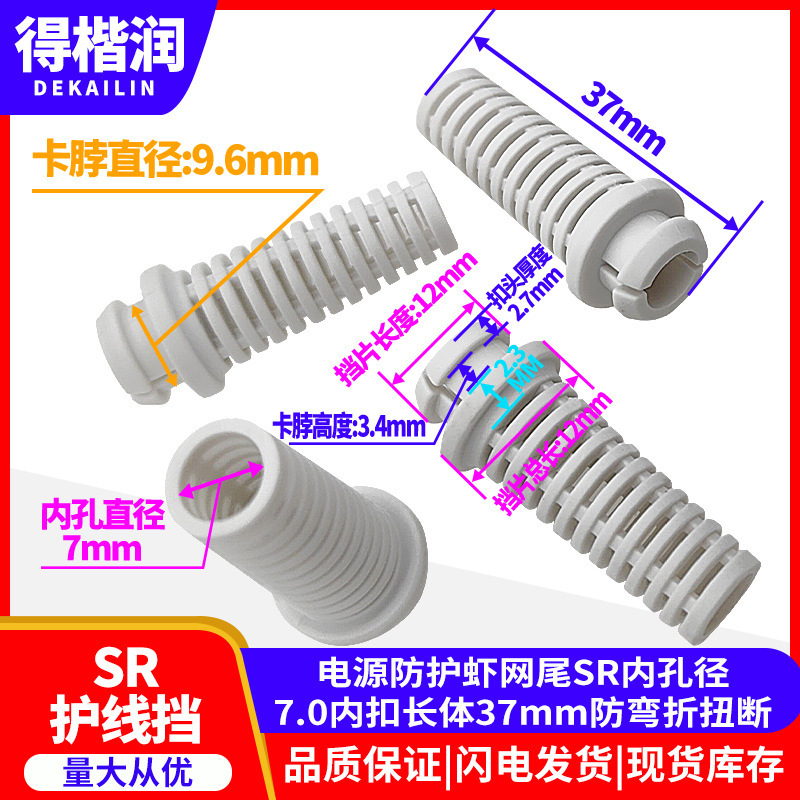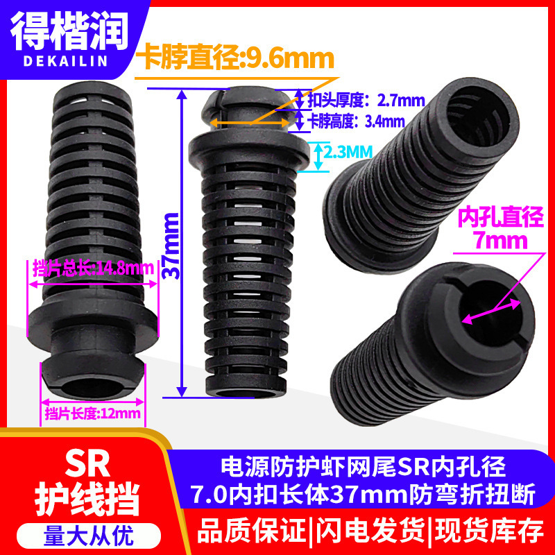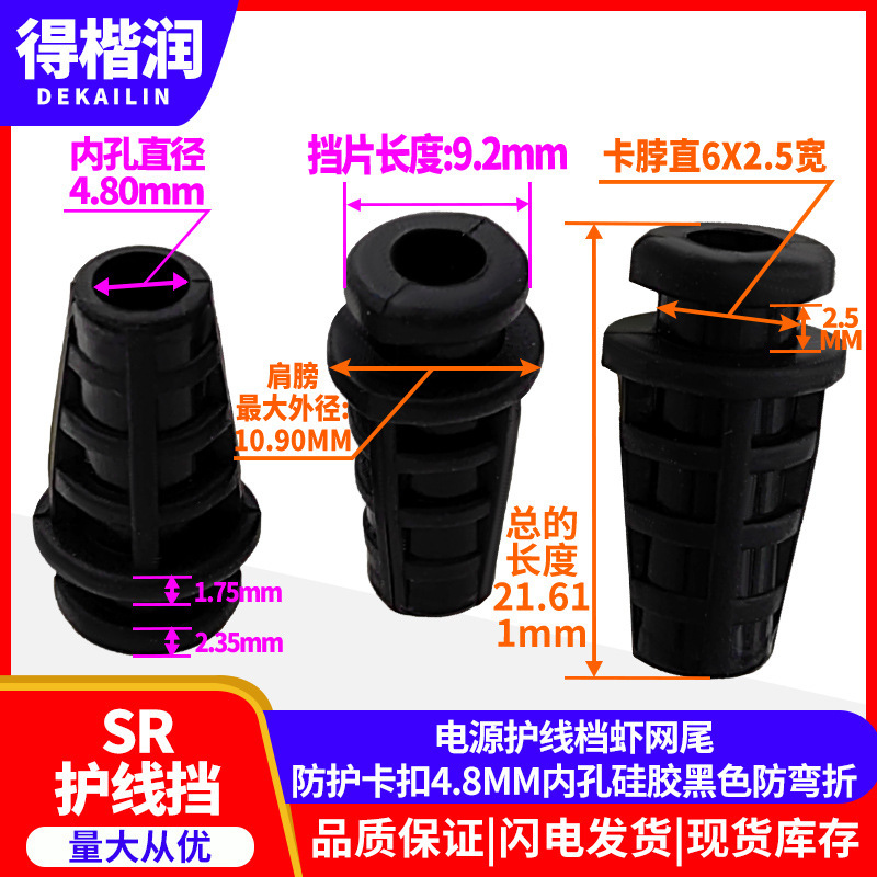 圆卡脖6.5MM内孔径护线档电源网虾尾防弯折卡扣卡套线尾巴