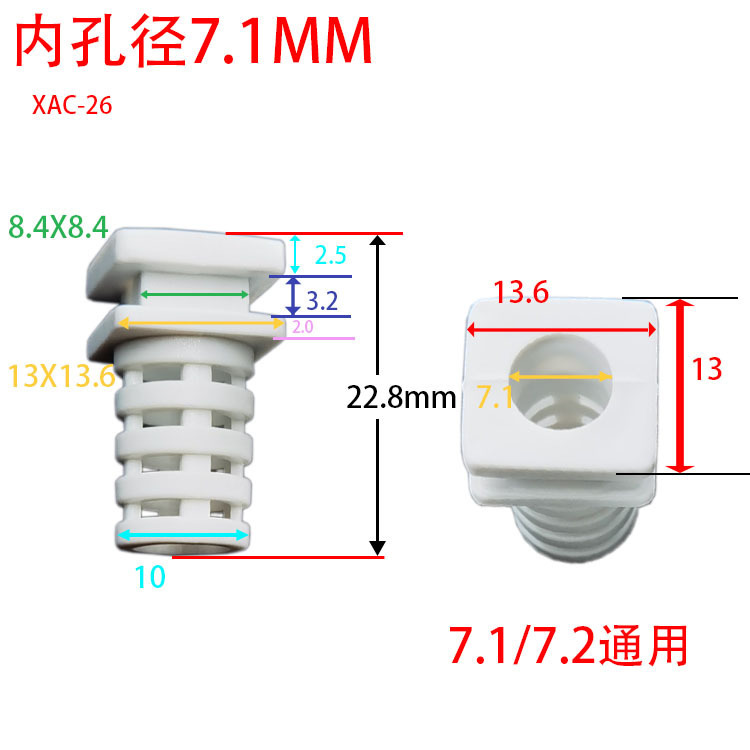 • 5.3MM 내부 구멍 흰색 사각형 카드 목 (XAC-11)