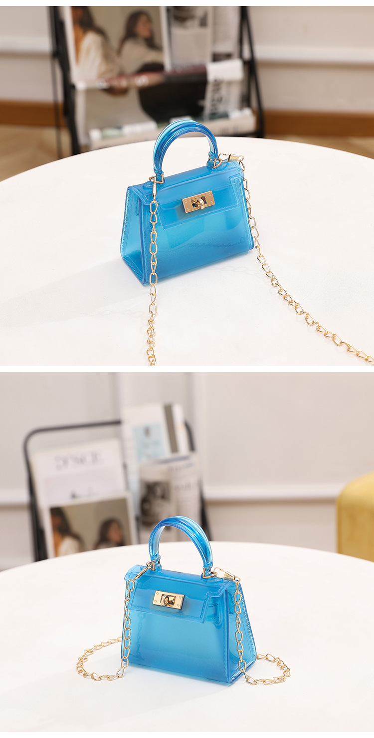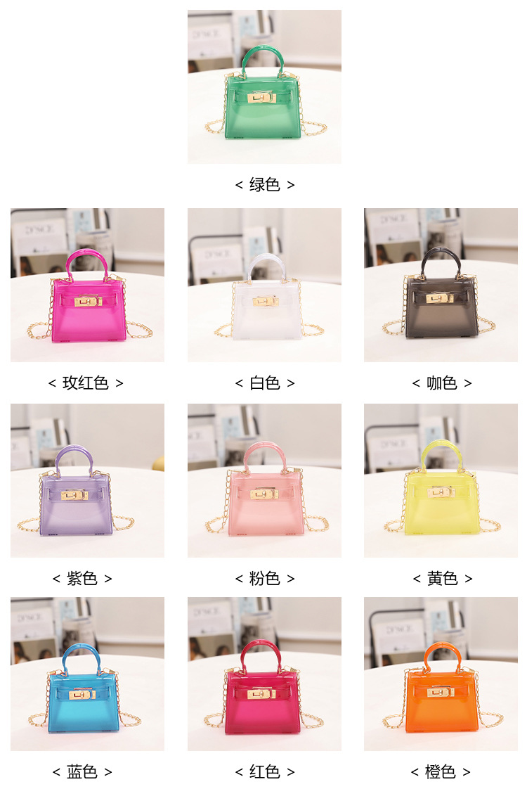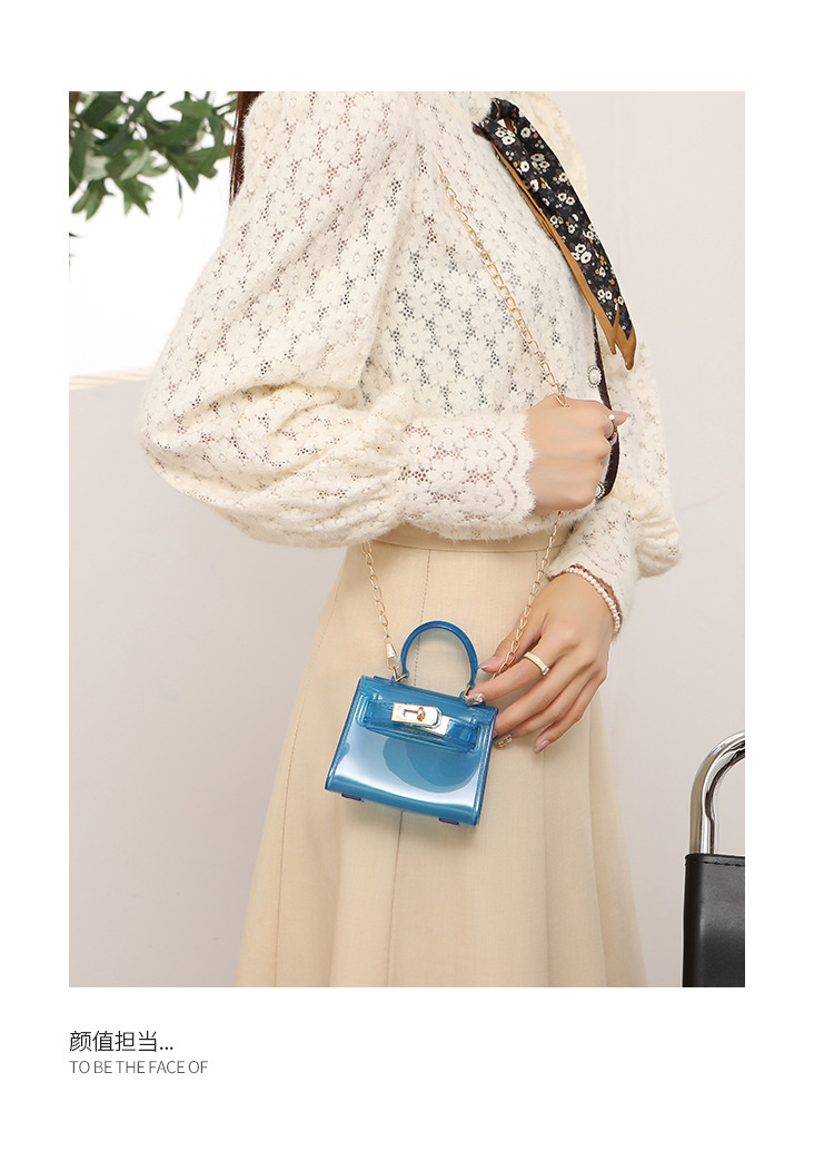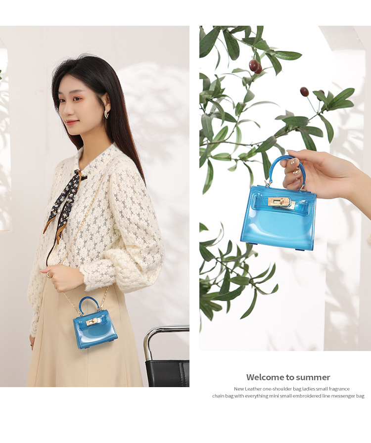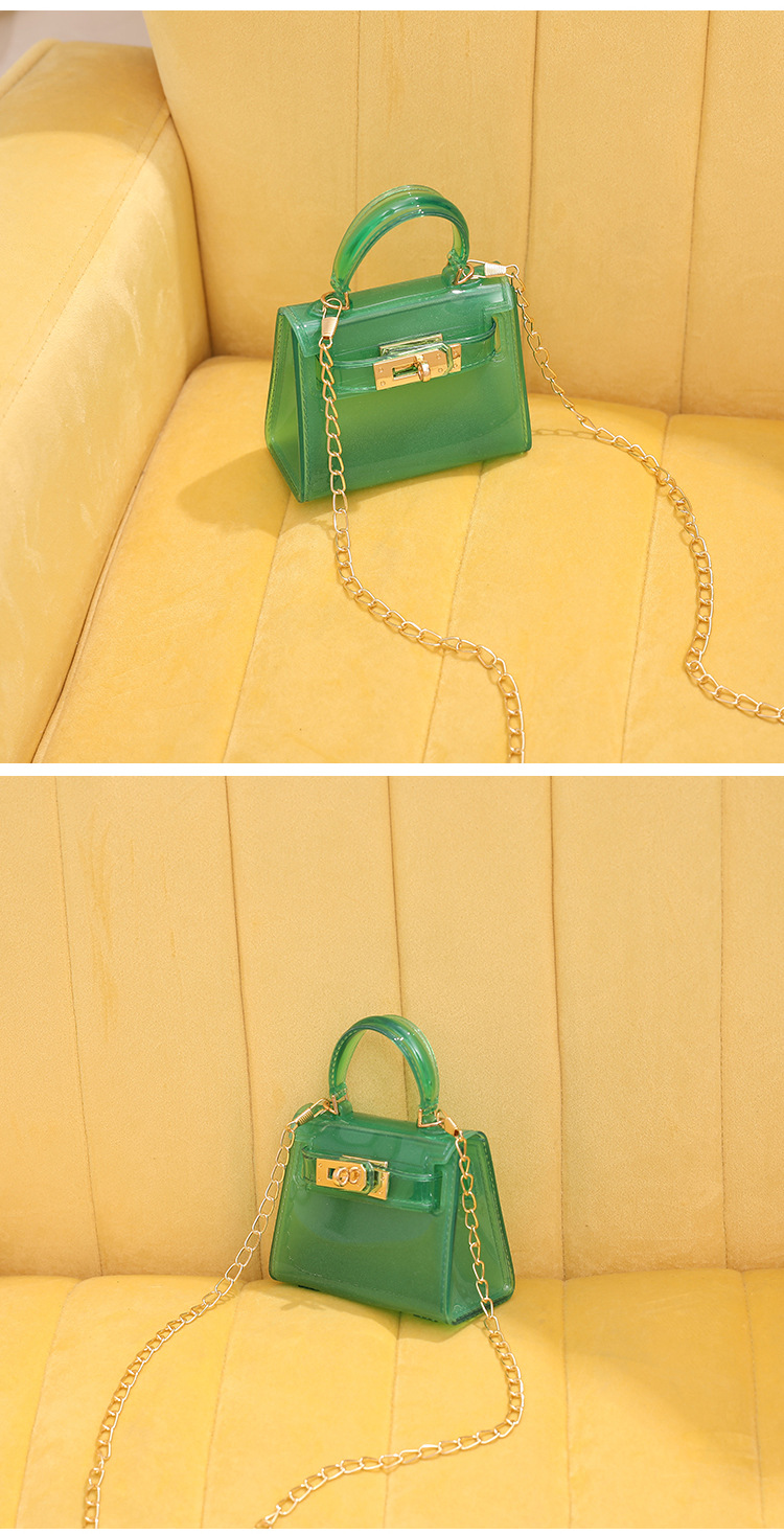 Shiling 가방 투명 젤리 가방 켈리 가방 새로운 여성 크로스 바디 가방 캔디 컬러 작은 가방 PVC 체인 가방스토어 가기