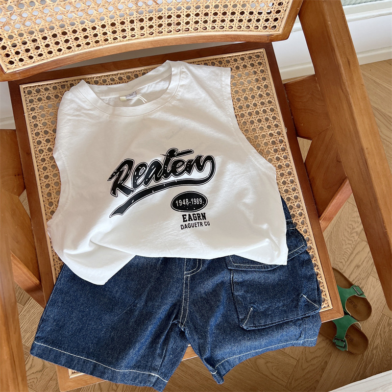 순면 아기/어린이 민소매 티셔츠 2026년 신상 다용도 트렌디 브랜드 멋진 남아/여아 조끼 상의 여름옷스토어 가기