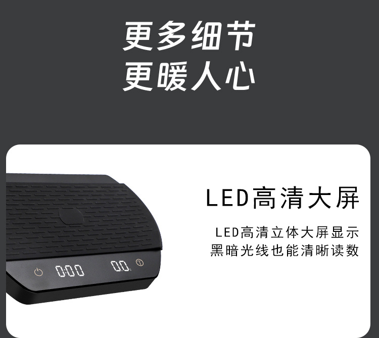 커피 저울 LED 디스플레이 주방 저울 USB 충전식 가정용 저울 타이머 전자 저울 제조 업체 식품 베이킹 저울스토어 가기