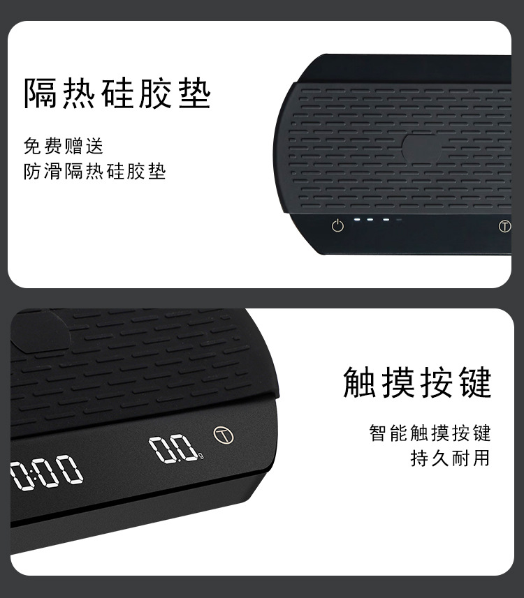 커피 저울 LED 디스플레이 주방 저울 USB 충전식 가정용 저울 타이머 전자 저울 제조 업체 식품 베이킹 저울