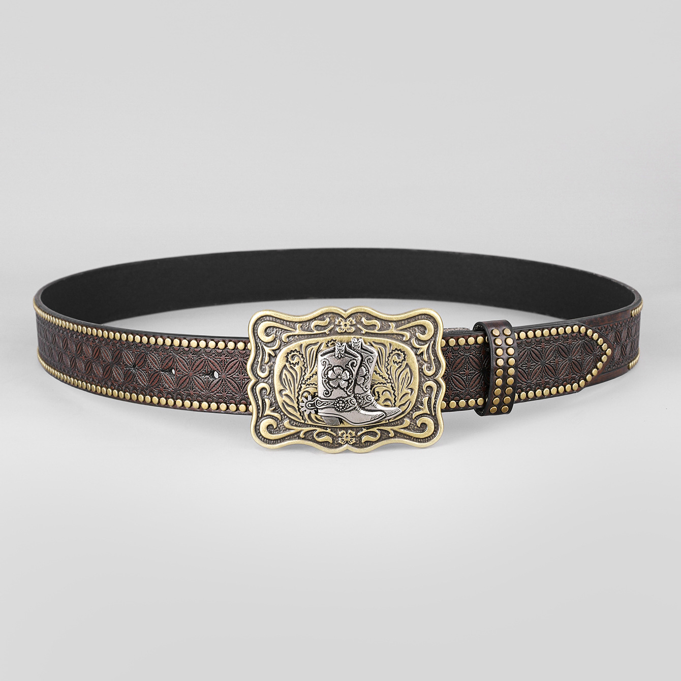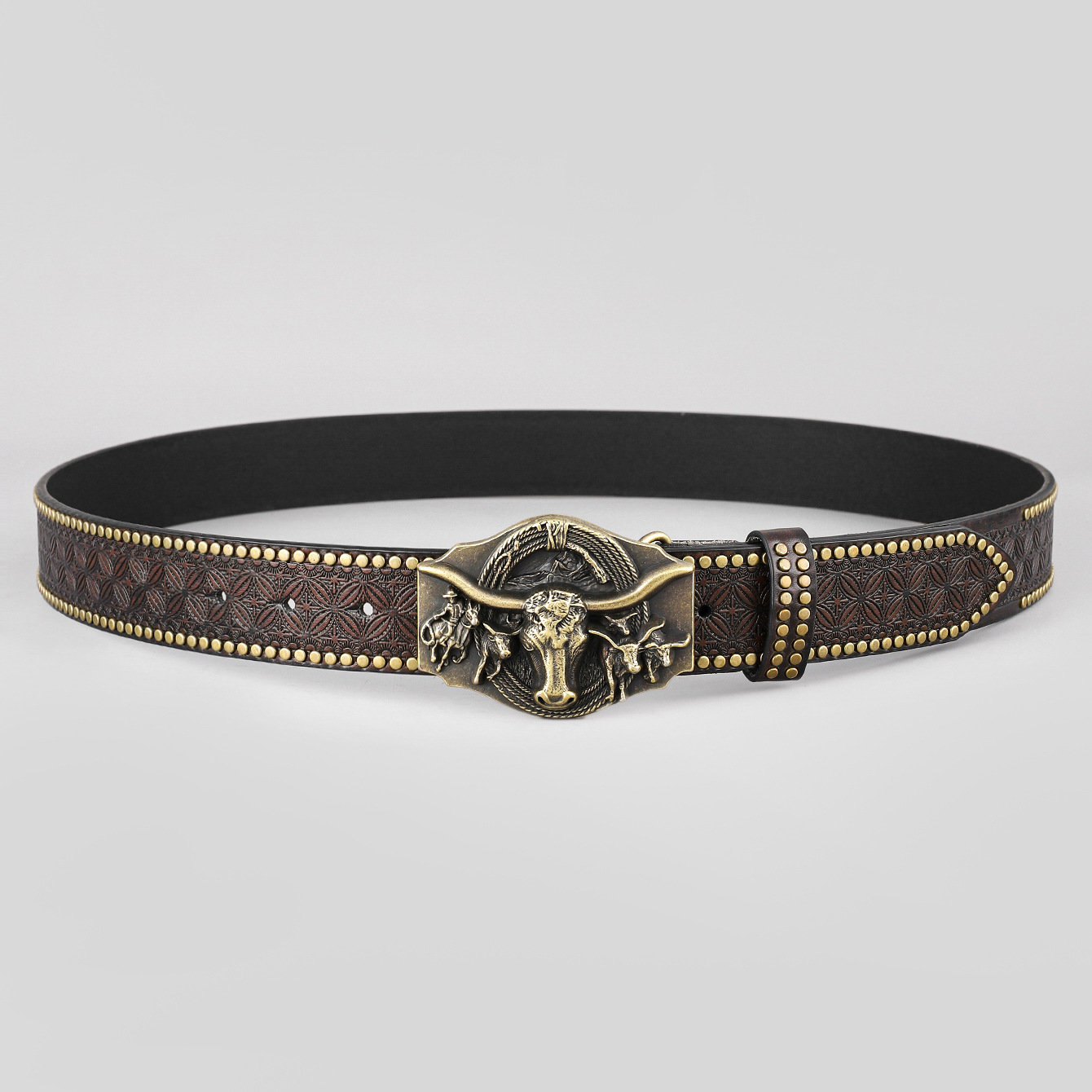 크로스 보더 웨스턴 데님 벨트 소 타우 하네스 트렌디 빈티지 청소년 펑크 양각 남자의 박힌 가죽 벨트