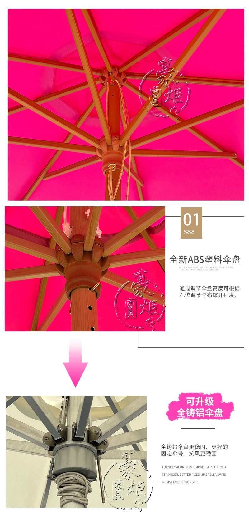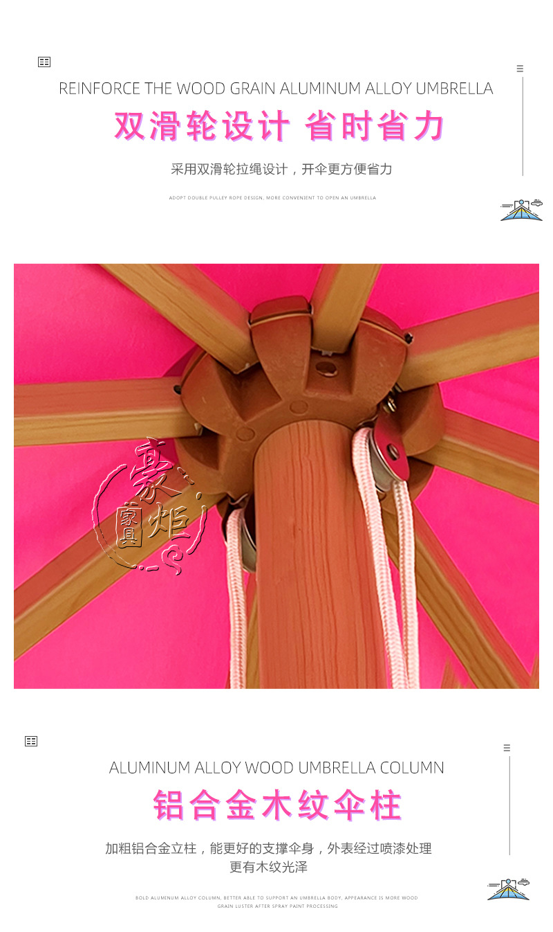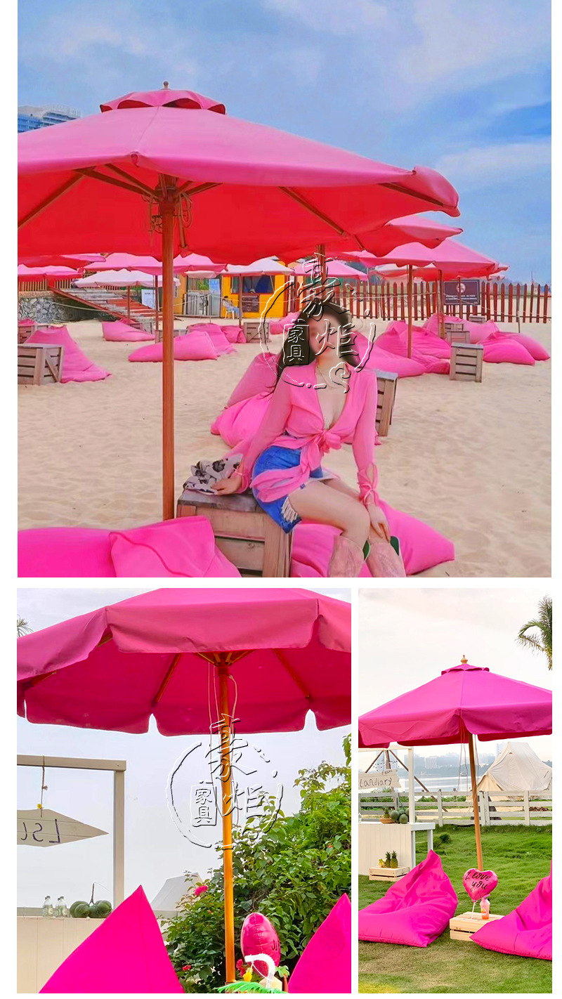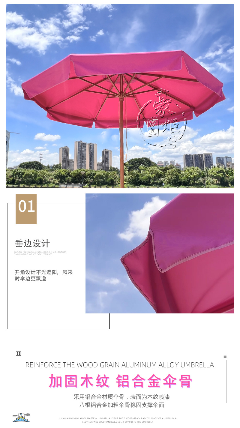 공장 도매 야외 로즈 레드 양산 원탑 두꺼운 알루미늄 중기둥 우산 호텔 풍치 풀 방풍 태양 우산스토어 가기