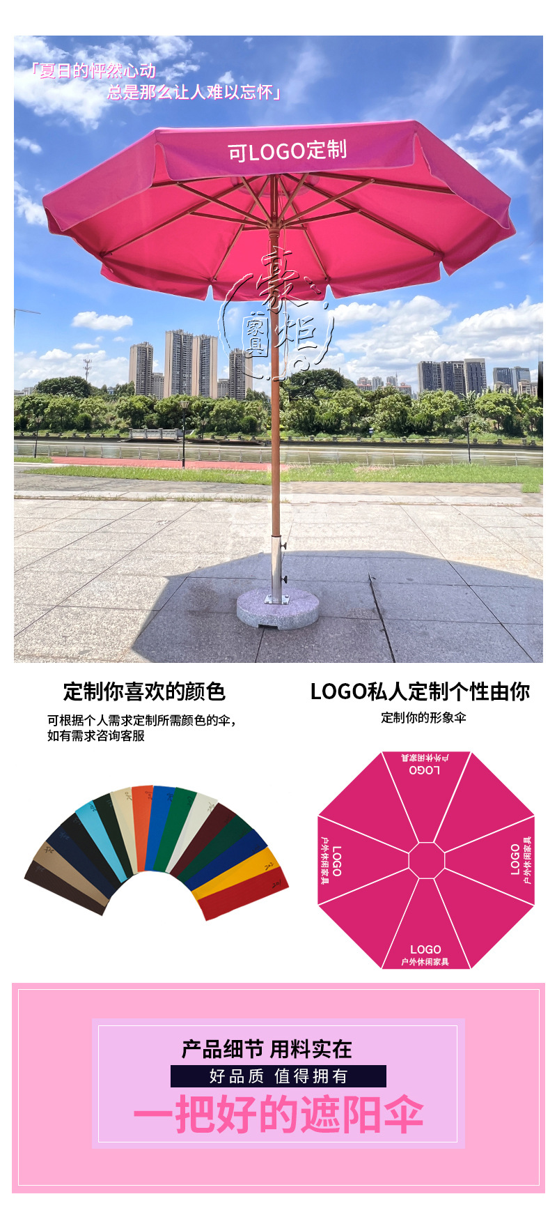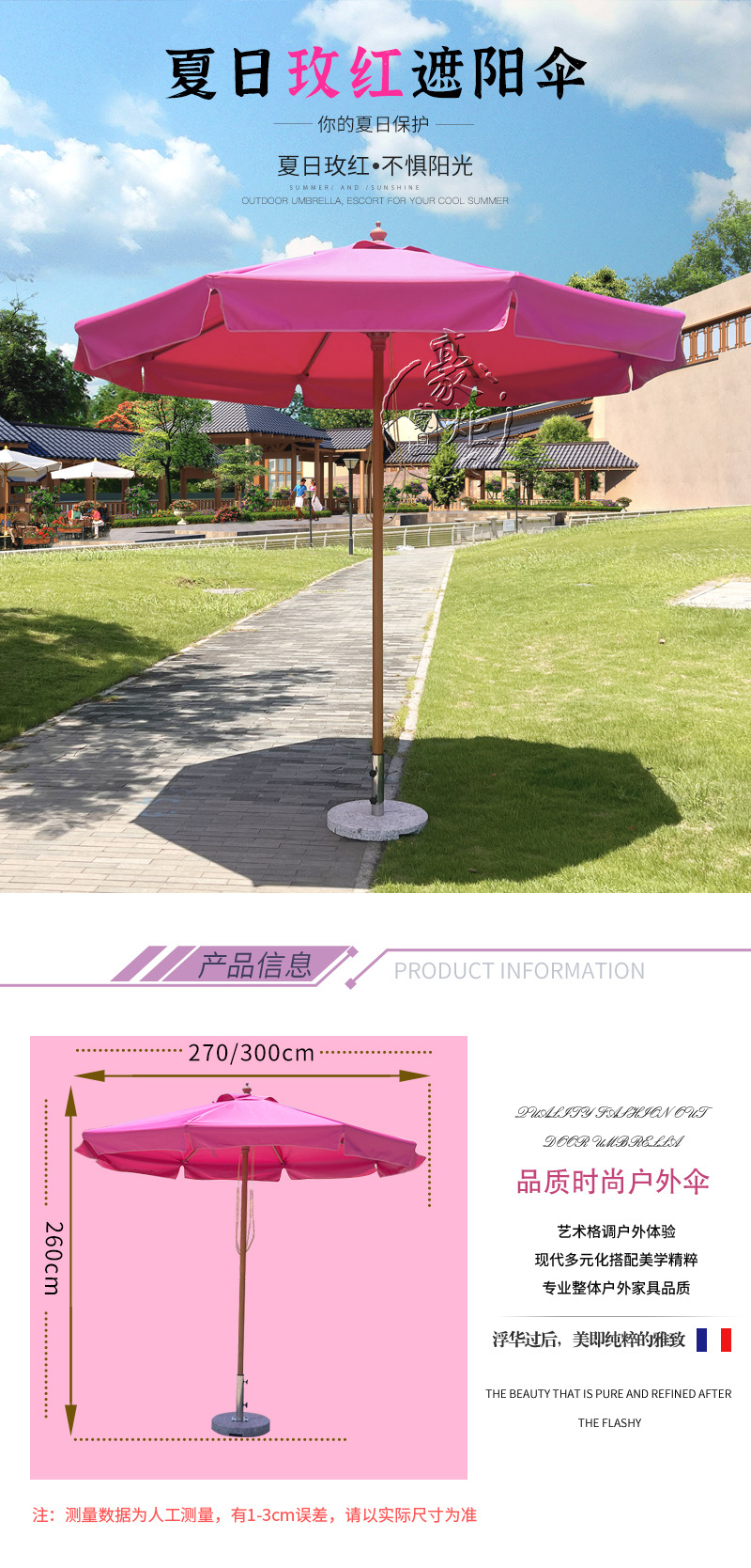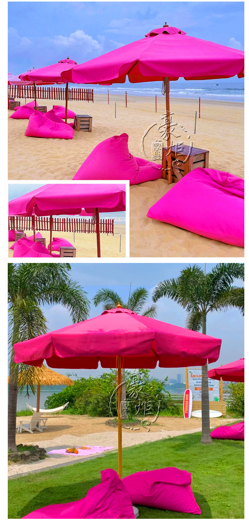 공장 도매 야외 로즈 레드 양산 원탑 두꺼운 알루미늄 중기둥 우산 호텔 풍치 풀 방풍 태양 우산스토어 가기