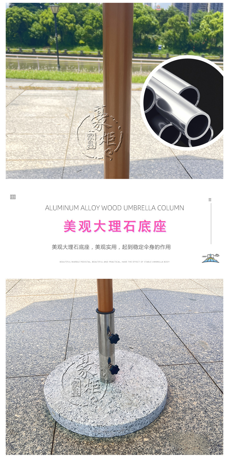 • 가장자리 나뭇결이 있는 가운데 기둥 우산 (주조 알루미늄 우산 판)