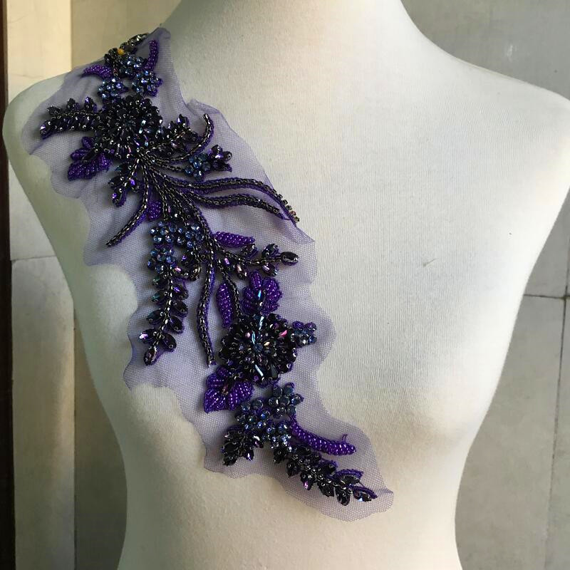 패션 보라색 유리 다이아몬드 무거운 산업 구슬 가느 다란 다이아몬드 꽃 DIY 원피스 스커트 코트 허리 리더 장식 다이아몬드