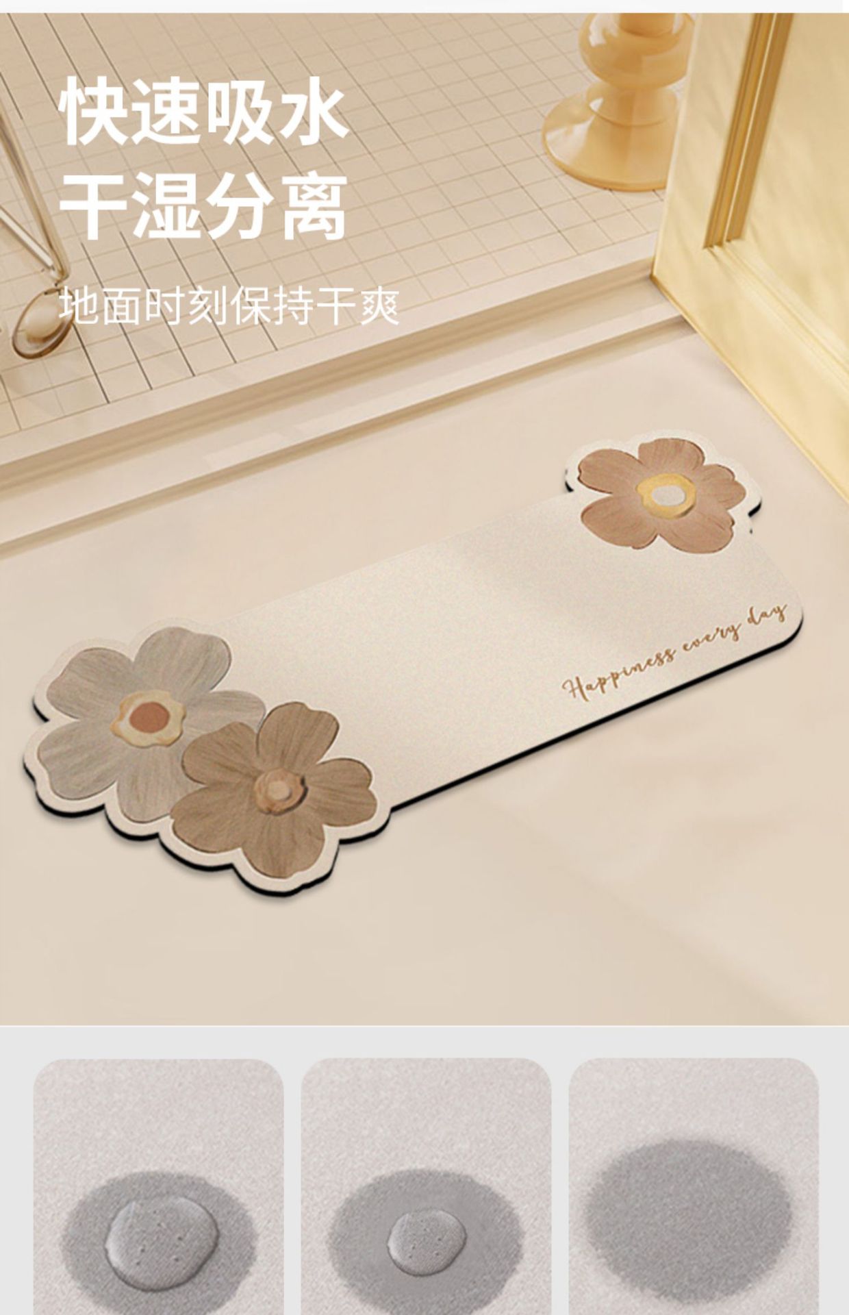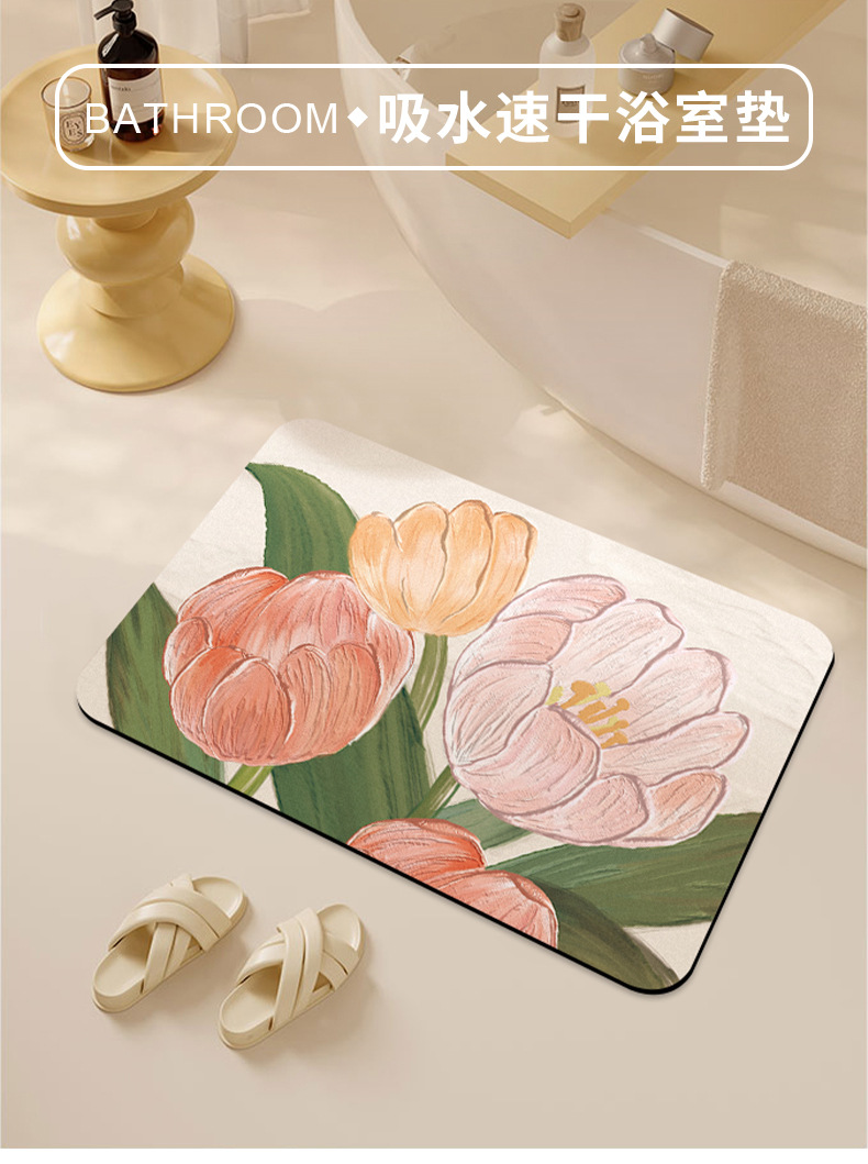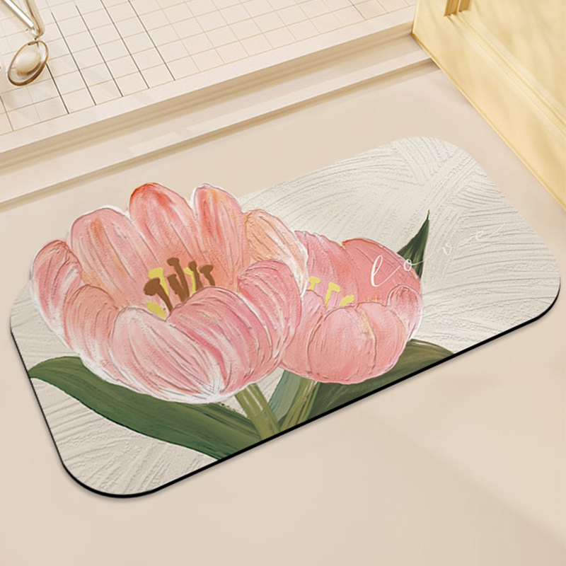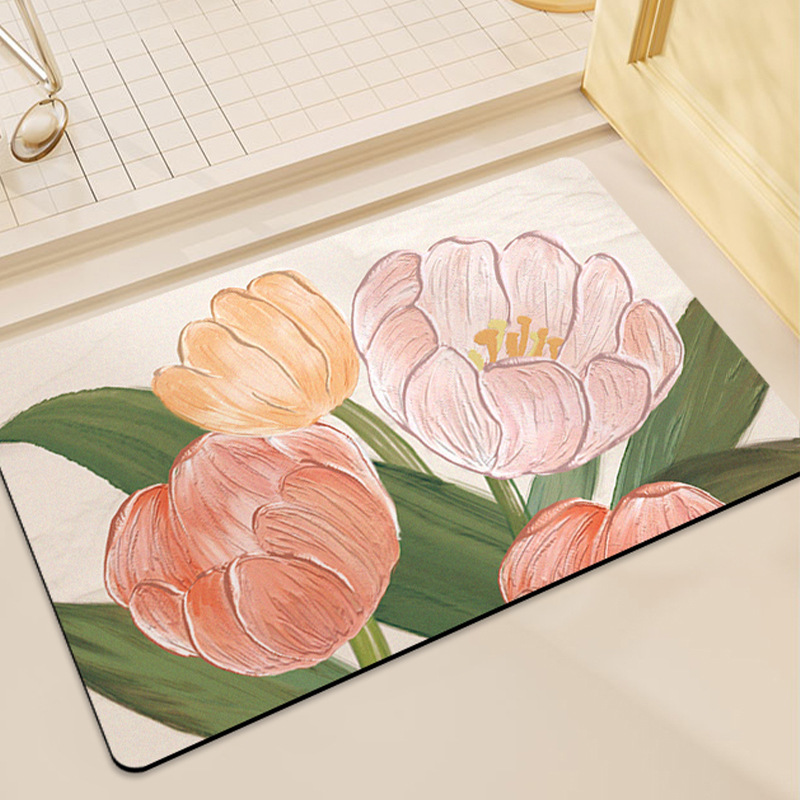 동백 욕실 규조 진흙 바닥 매트 흡수성 미끄럼 방지 소프트 매트 신선한 꽃 욕실 문 가정용 화장실 입구스토어 가기