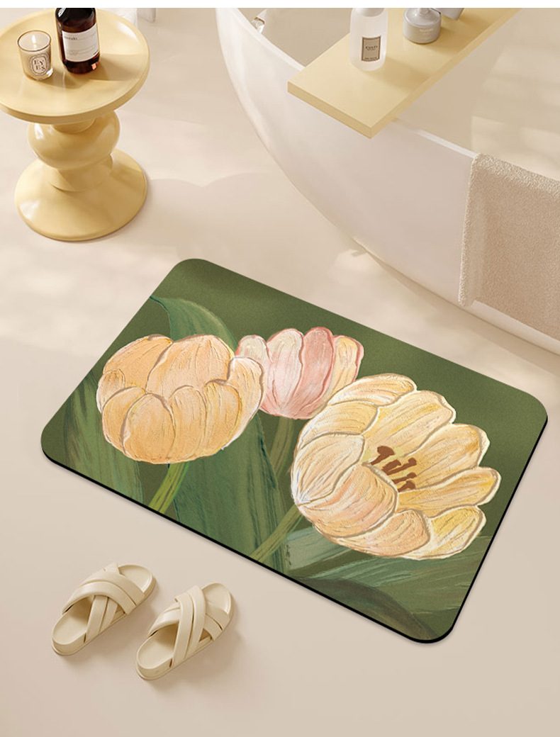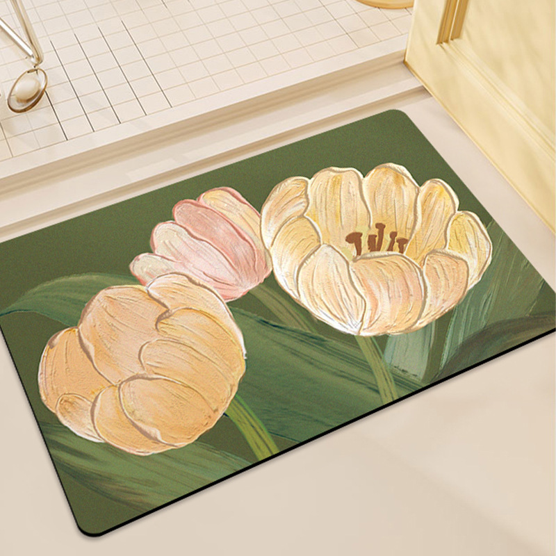 동백 욕실 규조 진흙 바닥 매트 흡수성 미끄럼 방지 소프트 매트 신선한 꽃 욕실 문 가정용 화장실 입구
