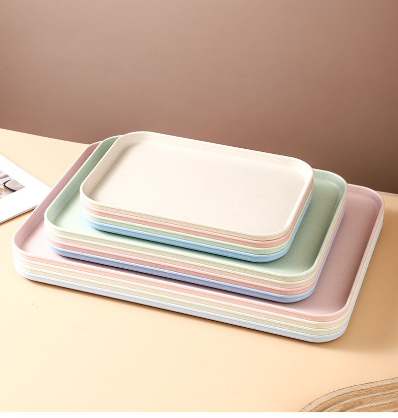 밀 밀짚 트레이 높은 색상 값 디너 플레이트 플라스틱 직사각형 접시 일본식 바람 물고기 접시 트레이 티 세트 트레이스토어 가기