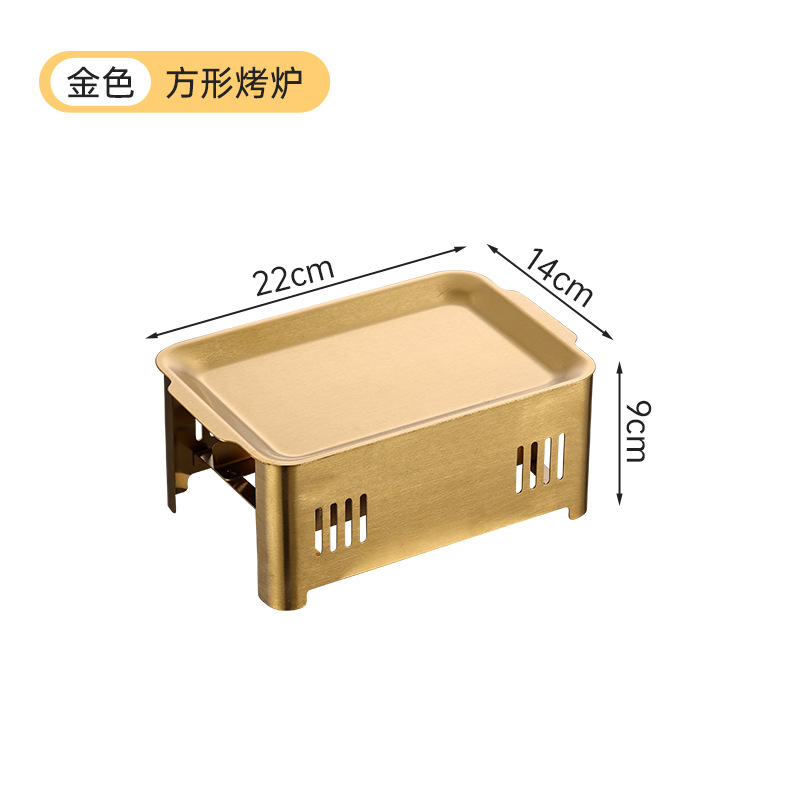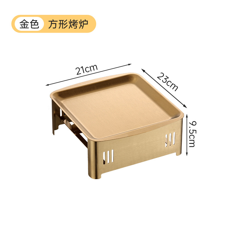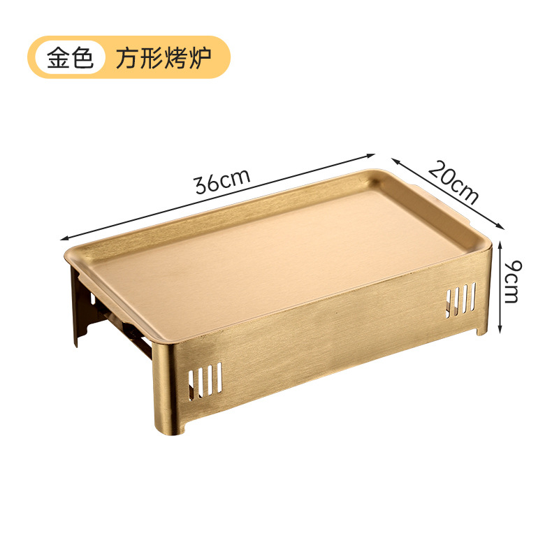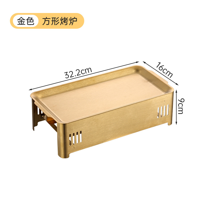 한국식 스테인레스 스틸 바베큐 열 보존로 양초 알코올 가열로 뜨거운 끈으로 황금 직사각형 바베큐로 상업용스토어 가기