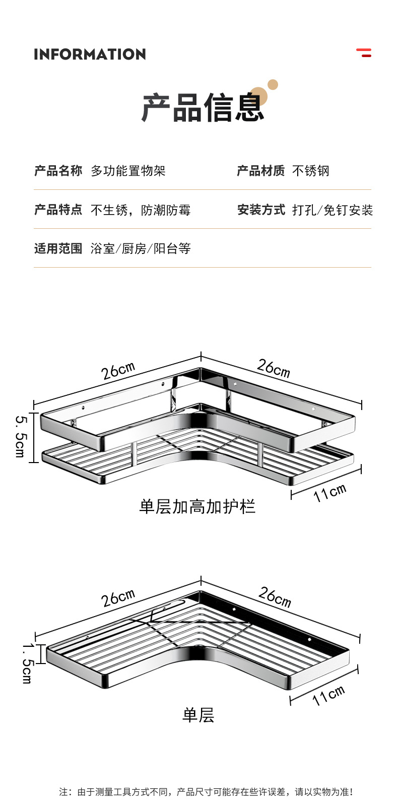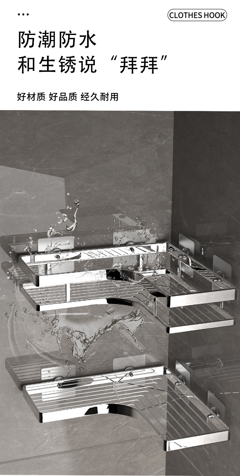 펀치 프리 욕실 랙 두꺼운 플랫 삼각대 욕실 코너 수납 랙 벽걸이 형 주방 코너 랙스토어 가기