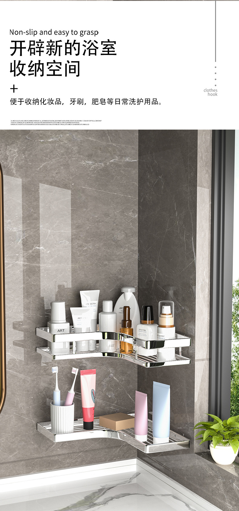 펀치 프리 욕실 랙 두꺼운 플랫 삼각대 욕실 코너 수납 랙 벽걸이 형 주방 코너 랙