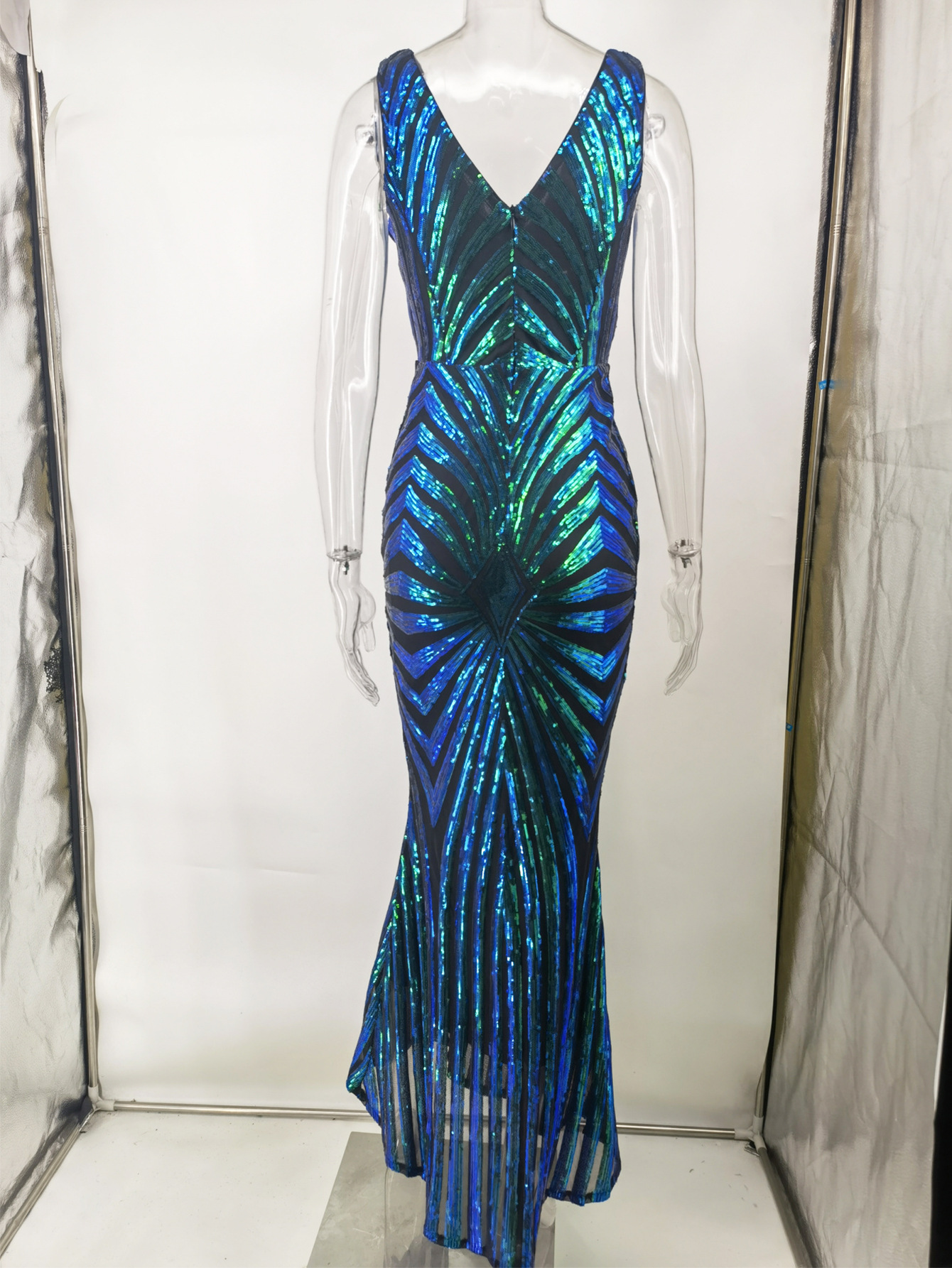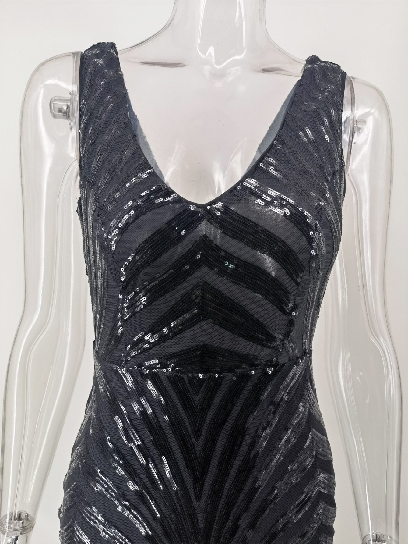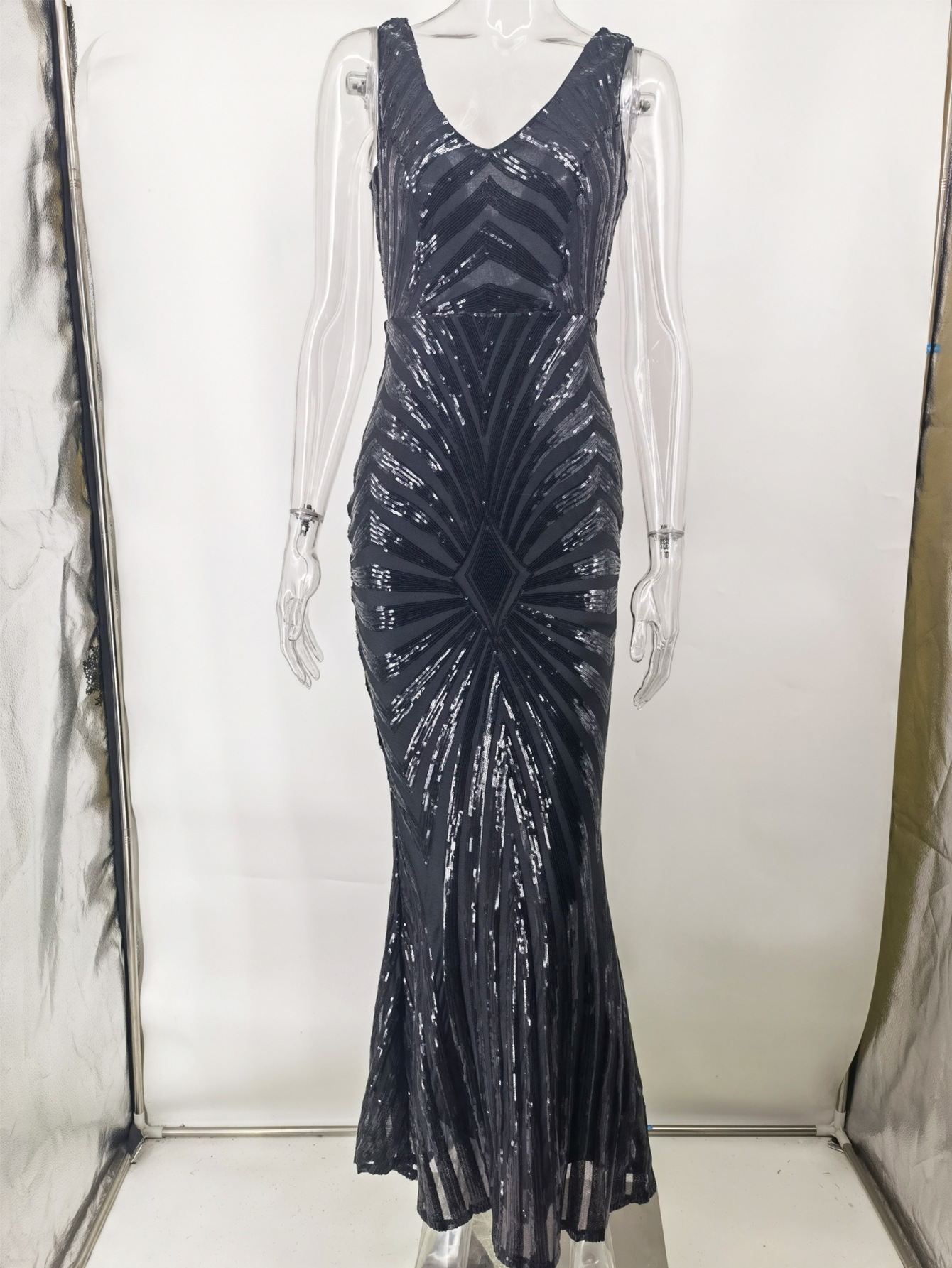 23 새로운 포지셔닝 플라워 엘라스틱 스팽글 원피스 유럽과 미국 아마존 크로스 보더 4 색 더블 브이넥 원피스