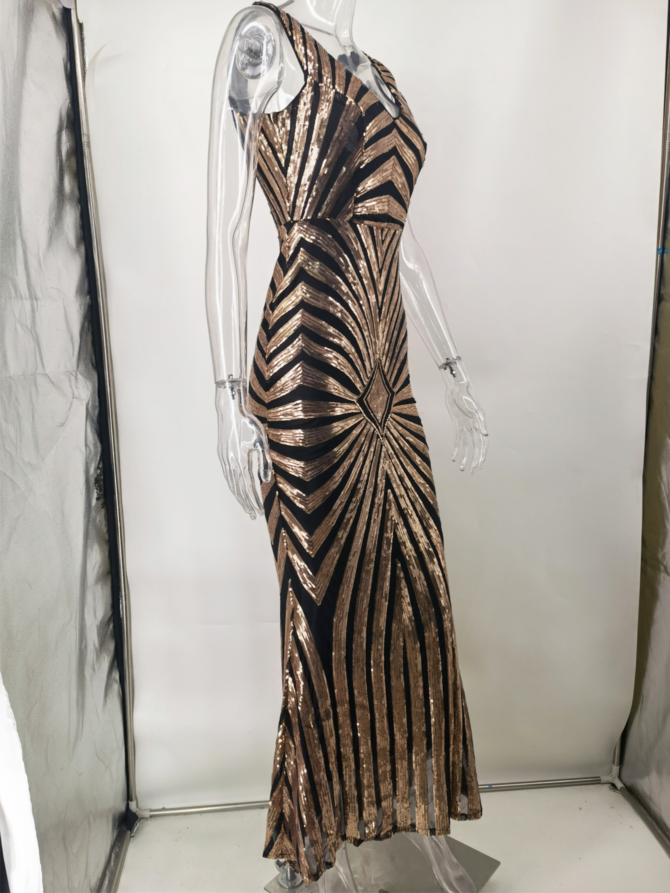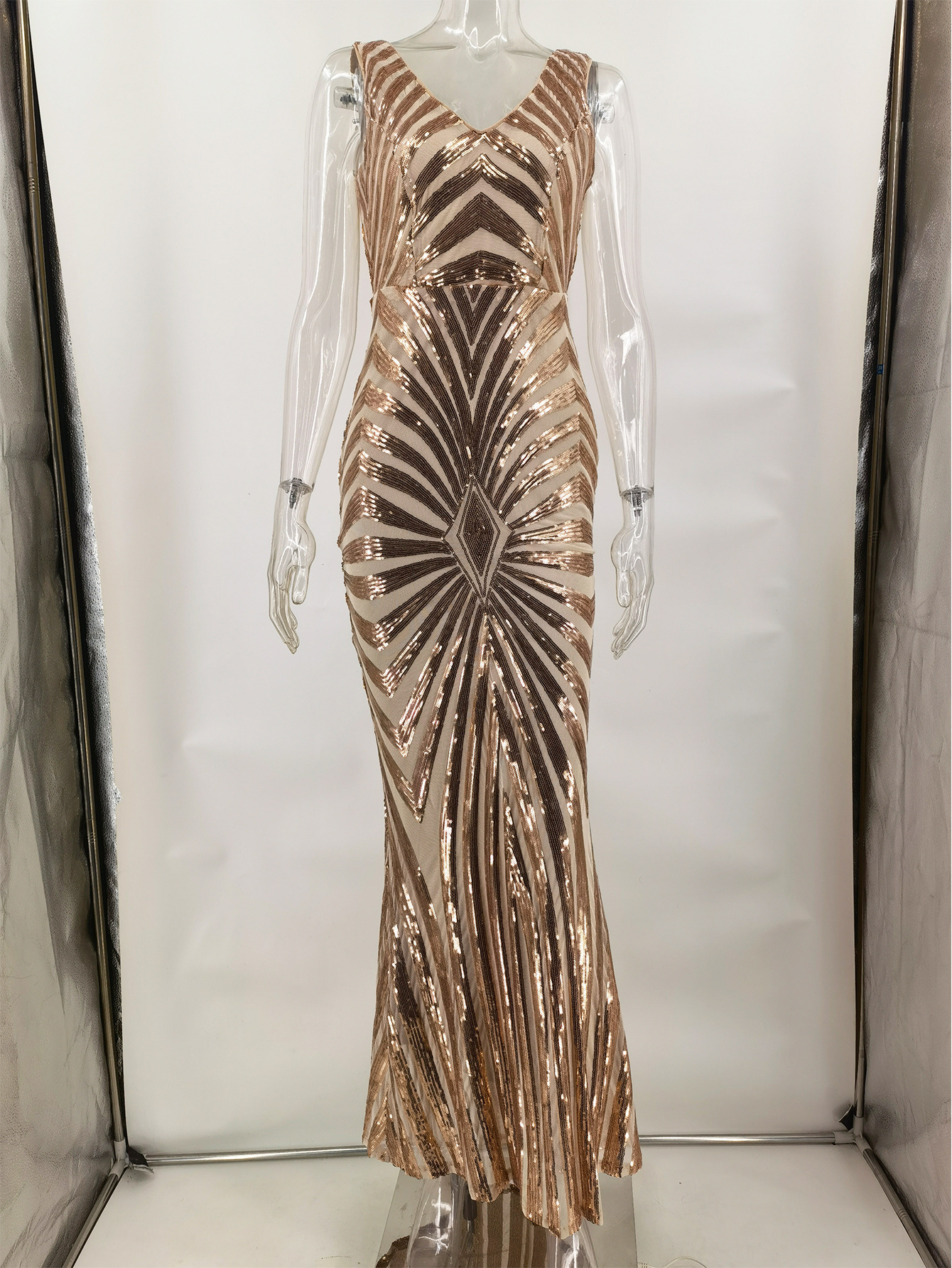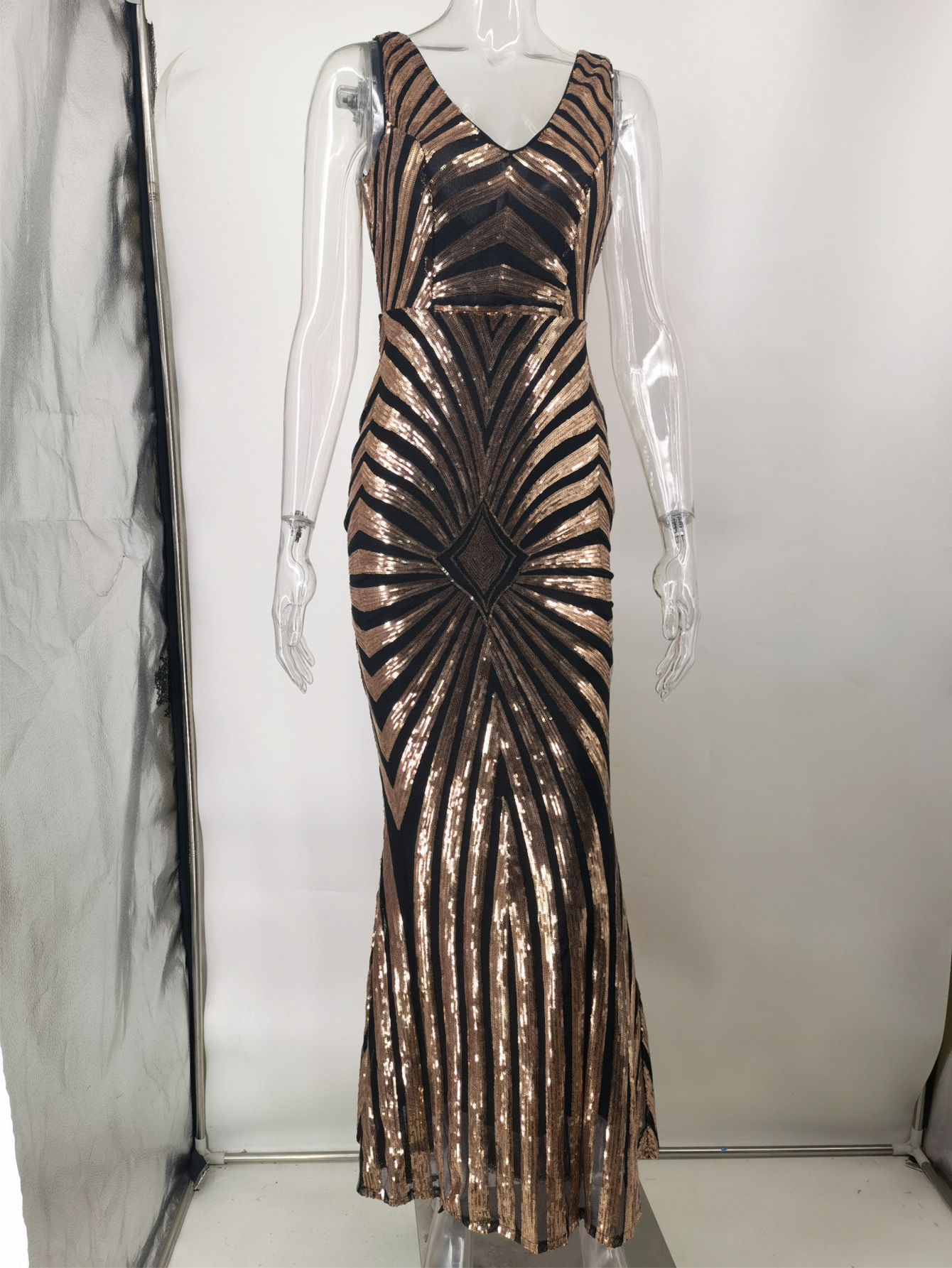 23 새로운 포지셔닝 플라워 엘라스틱 스팽글 원피스 유럽과 미국 아마존 크로스 보더 4 색 더블 브이넥 원피스