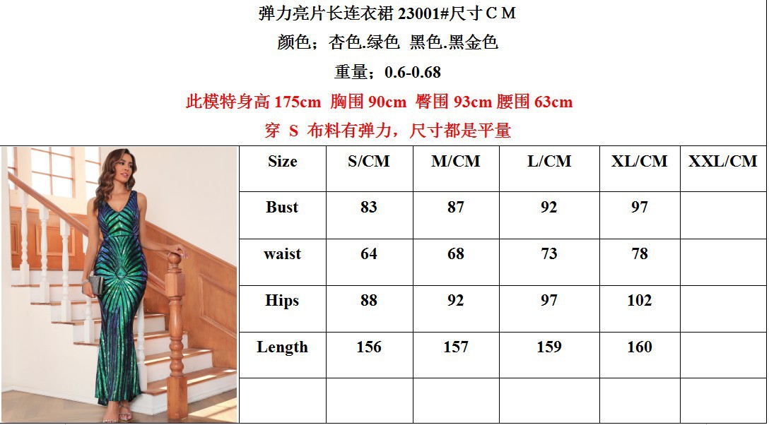 23 새로운 포지셔닝 플라워 엘라스틱 스팽글 원피스 유럽과 미국 아마존 크로스 보더 4 색 더블 브이넥 원피스스토어 가기