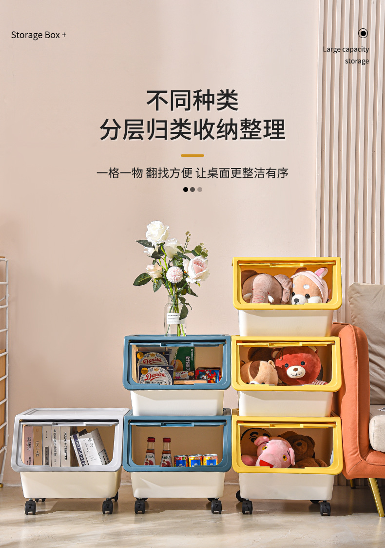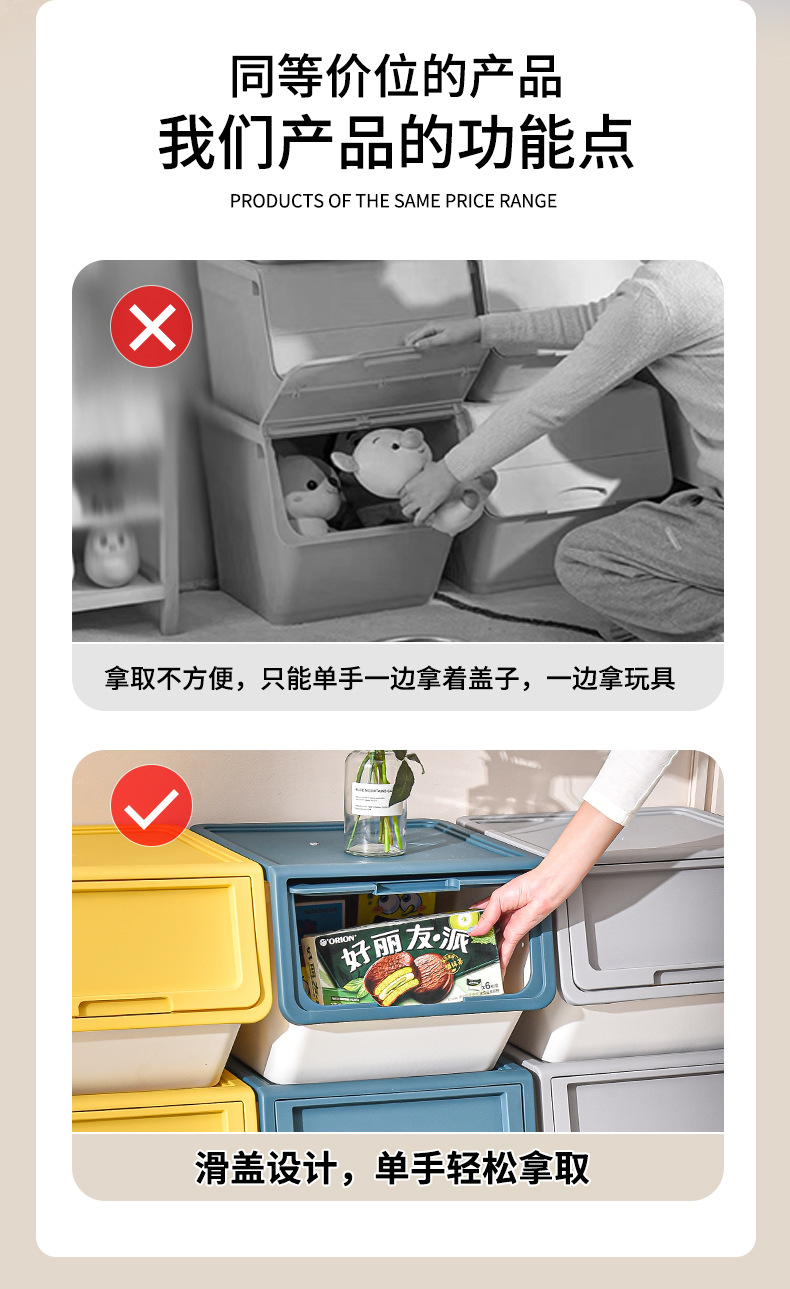 가정용 어린이 간식 플립 보관함 대형 두꺼운 잡화 보관함 장난감 전면 열기 접이식 보관함