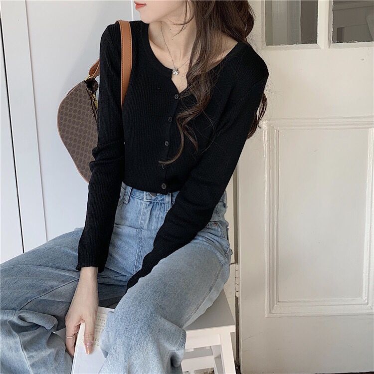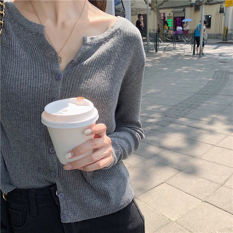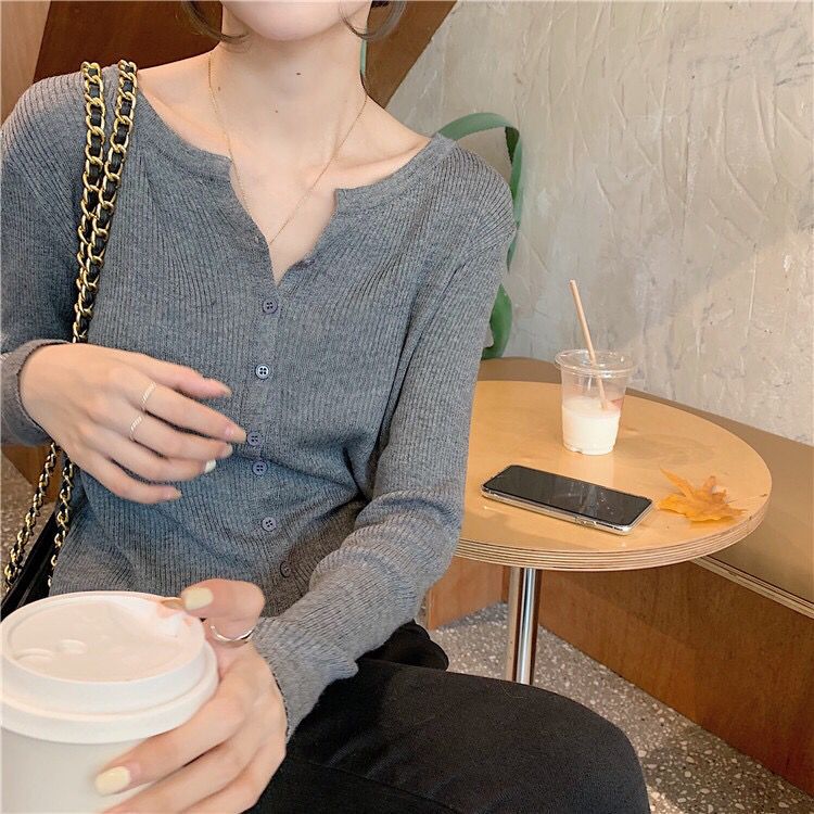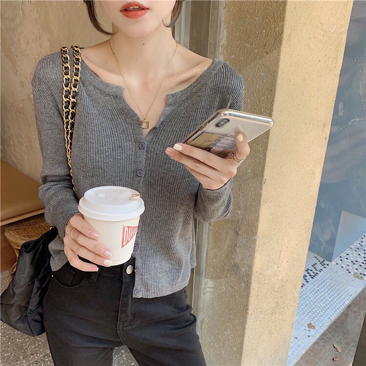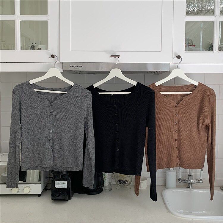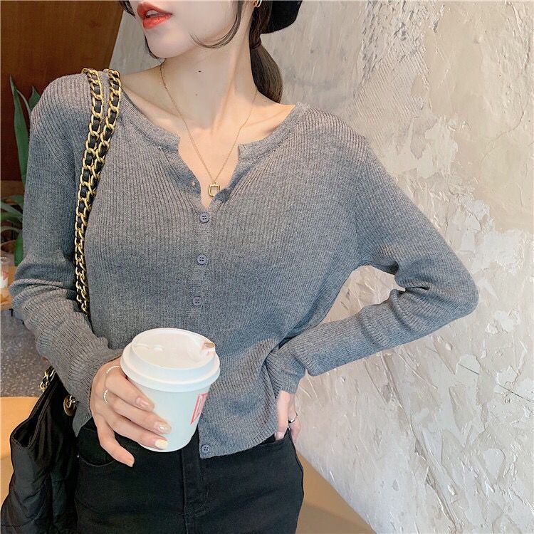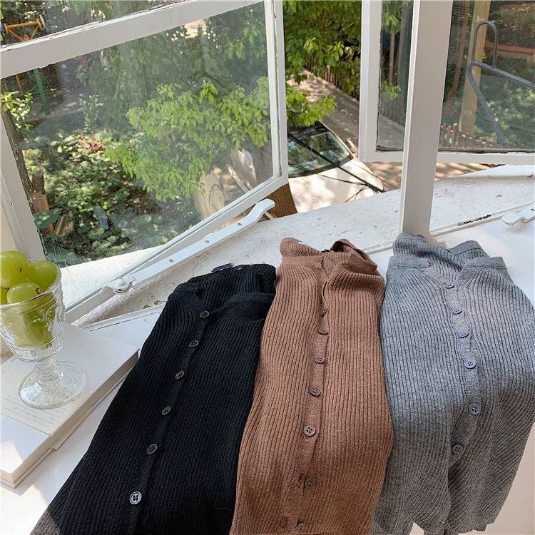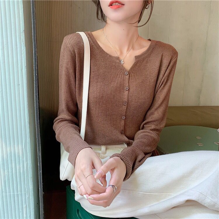 6 울 봄과 가을 V-넥 스웨터 여성용 얇은 긴팔 단색 베이스 탑 짧은 외부 자외선 차단제 재킷 가디건스토어 가기